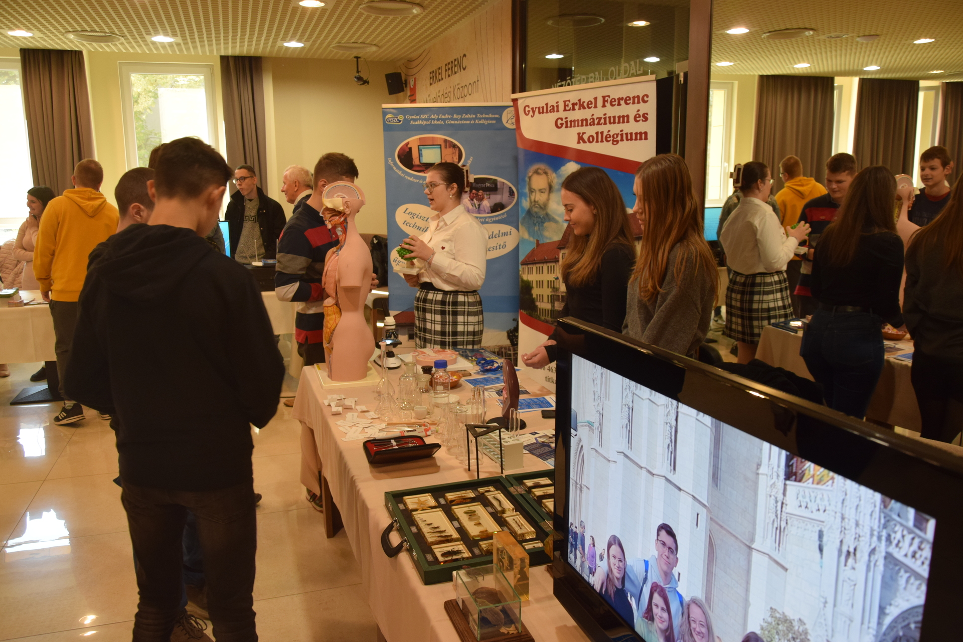 Továbbtanulási börzét rendeztek október 16-án az Erkel Ferenc Művelődési Központban. Szabó Enikő, a szervező Mi egy Másért Közhasznú Egyesület szakmai vezetője elmondta: a rendezvényre az általános iskolák hetedik és nyolcadik osztályosait várták. A művelődési házban gyulai, békéscsabai és kétegyházi intézmények is bemutatkoztak.