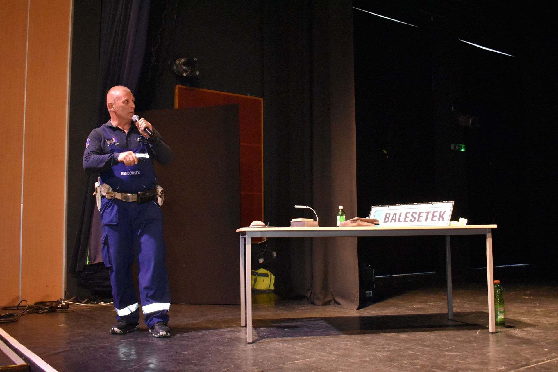 A diákokat Bede Sándor gyulai rendőrkapitány köszöntötte, majd Pintér József, a Veszprémi Rendőrkapitányság tizennyolc évnyi helyszínelői tapasztalattal rendelkező baleset-megelőzési szakembere osztott meg a fiatalokkal valós történeteket és a munkája során összegyűjtött videókat, képeket.
