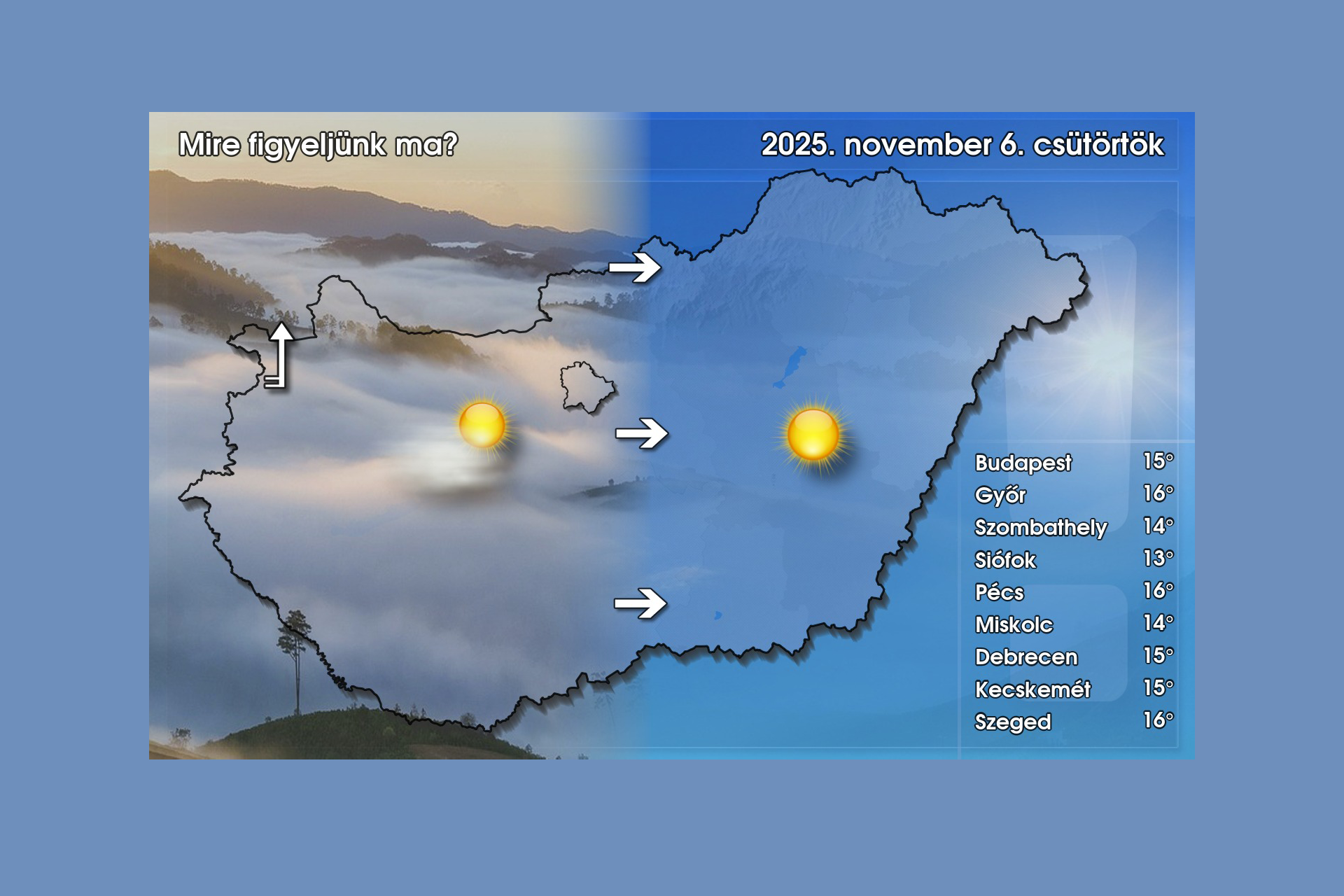 Sok mindent nem kell hozzáfűzni a mellékelt ábrához. A pára, köd fokozatos feloszlását követően szinte zavartalanul napos, csapadékmentes időben lesz részünk, csak helyenként képződhet kevés gomolyfelhő. A légmozgás is nagyrészt mérsékelt lesz, de az Észak-Dunántúlon kissé lengedezhet a délkeleti szél. A hőmérséklet csúcsértéke általában 14, 15 fok körül várható.