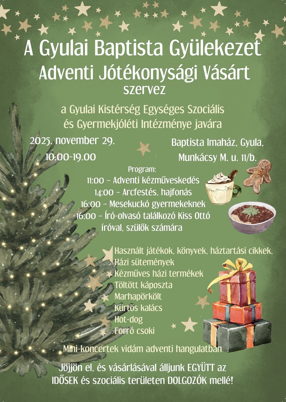 Adventi jótékonysági vásárt szervez a gyulai baptista gyülekezet