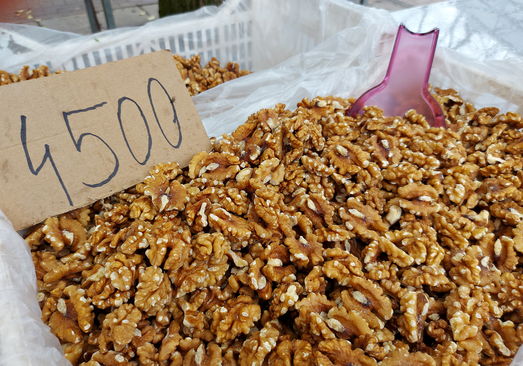 Ottjártunkkor 4000–6000 forintba került a dió kilója. Tavalyi termést egy helyen árultak, a többi helyen idei diót kínáltak.