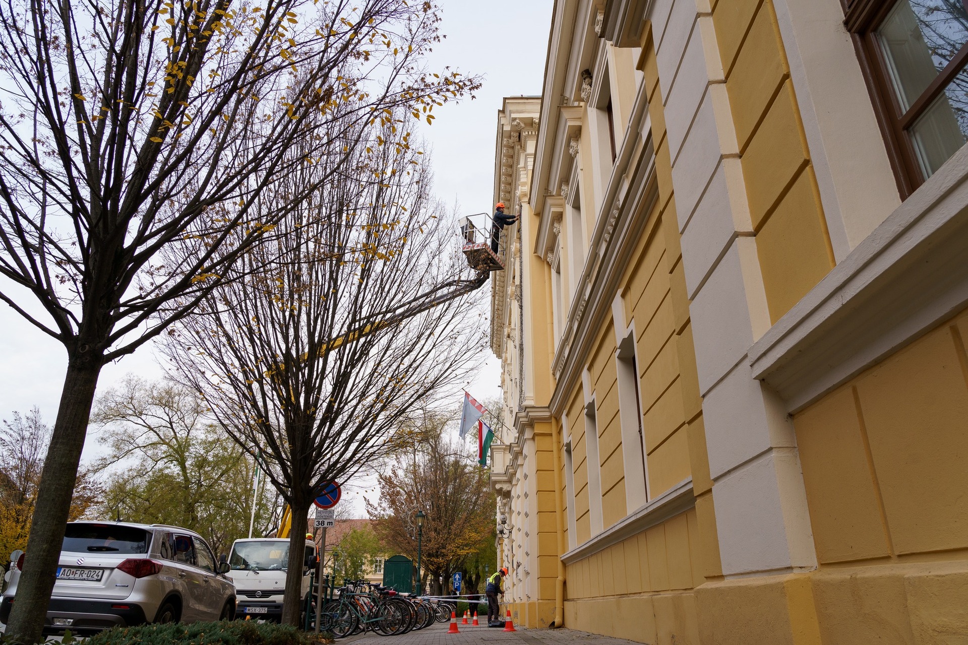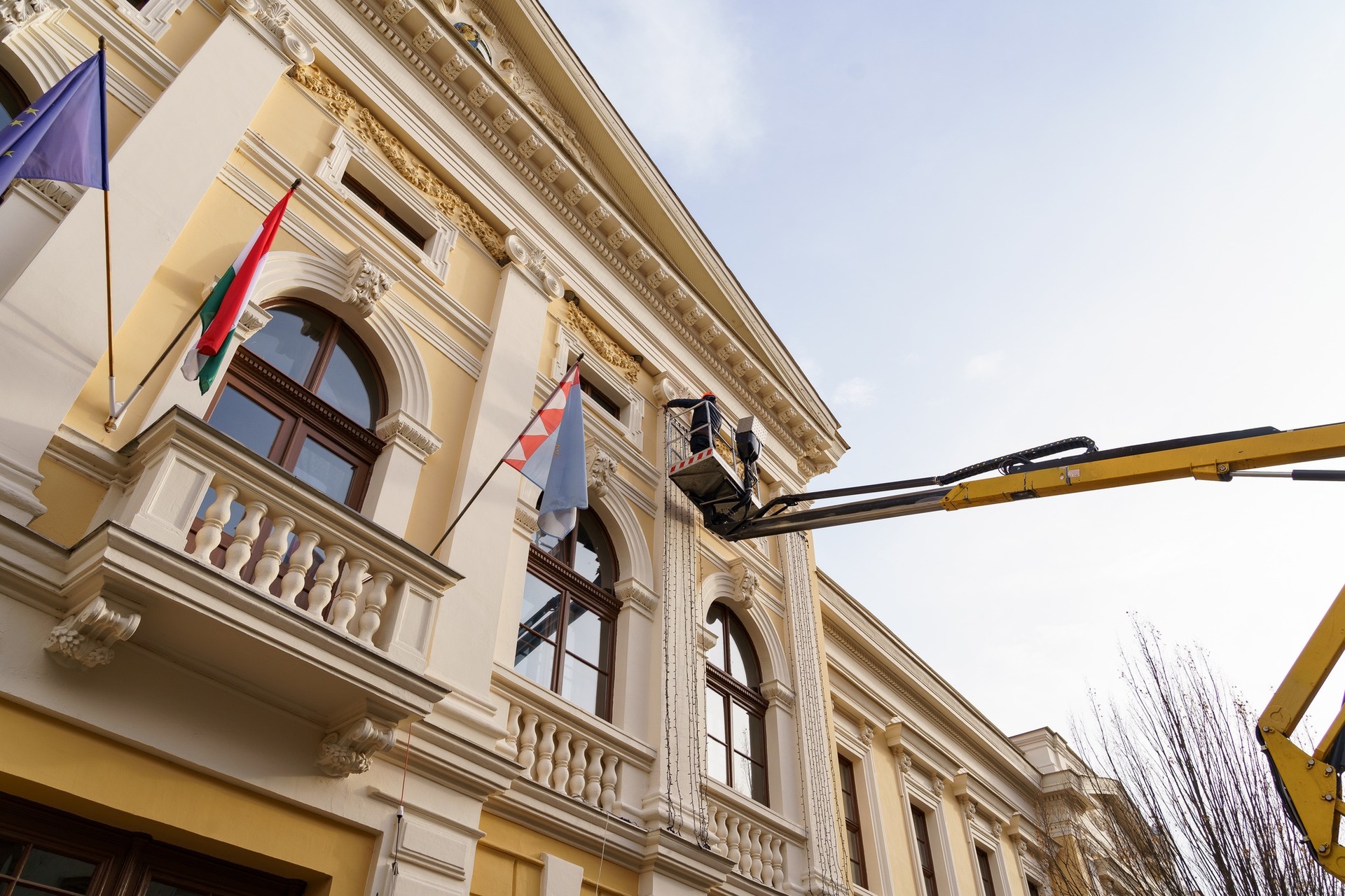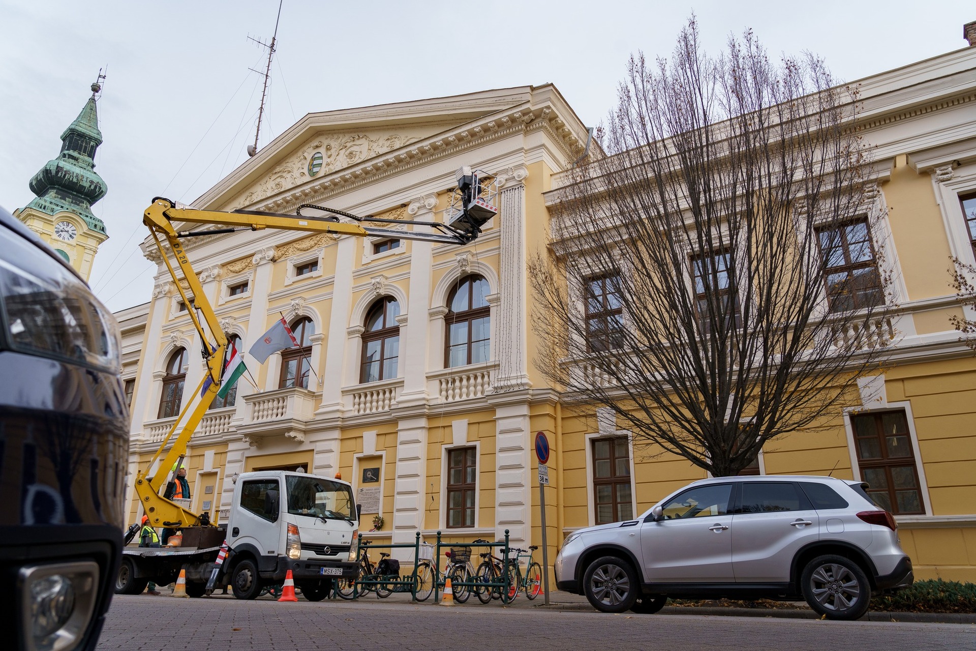 Elkezdték felszerelni a szakemberek a díszkivilágítást Gyulán a két hét múlva kezdődő adventi időszakra.