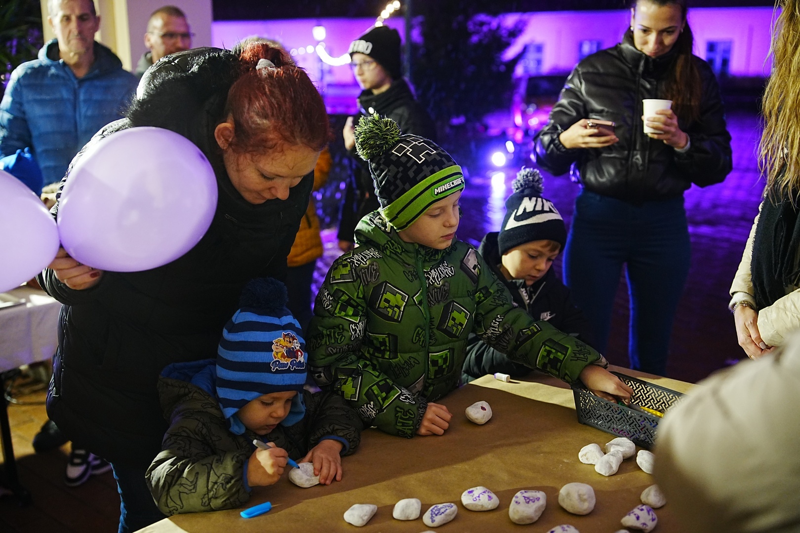 Mint ismertette, az óvodások idén lila színnel kifestett kavicsokat készítettek, amelyekből a kastély előtt a koraszülöttség egyik jelképét, egy polipot raktak ki. Az elnöktől megtudtuk, a kis kövek a gyerekosztály előtti kiskertben kapnak majd helyet.