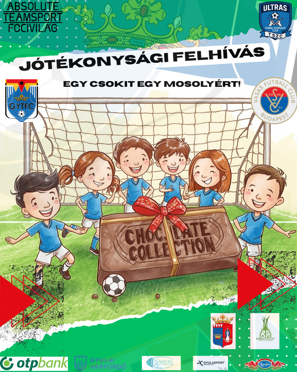 A klub arra kéri a szurkolókat, hogy egy-egy tábla csokoládéval vagy pár szaloncukorral segítsék a civil kezdeményezést, amely révén évek óta megörvendeztetik a sérült gyermekekkel foglalkozó intézményekbe járó, illetve a gyermekotthonokban élő fiatalokat Békés vármegyében.