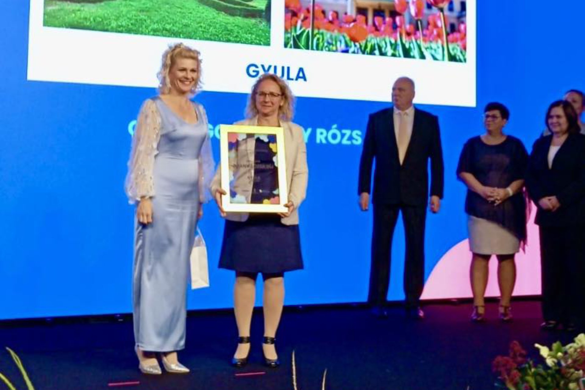 Kiemelte: az Arany Rózsa díjat régiónként egy-egy olyan település nyerheti el, ahol hosszú ideje folyamatosan odafigyelnek mind a kulturális örökség, mind az épített és a természeti környezet védelmére, a zöldfelületek karbantartására, illetve a parkosításra is. Idén Gyula városa lett a Dél-Alföld régió kitüntetettje. A díjat Gyula főkertésze, Szászné Várkonyi Adrienn vehette át Budapesten.