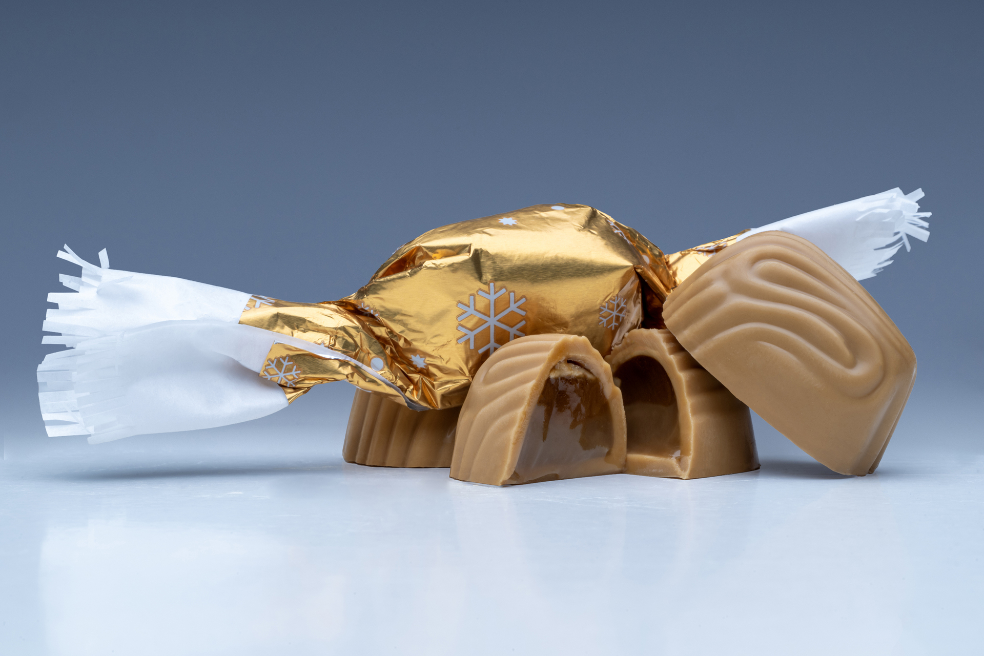 a Szent Korona cukrászda karamellizált fehércsokoládéval bevont Lotus kekszes karamellás szaloncukra