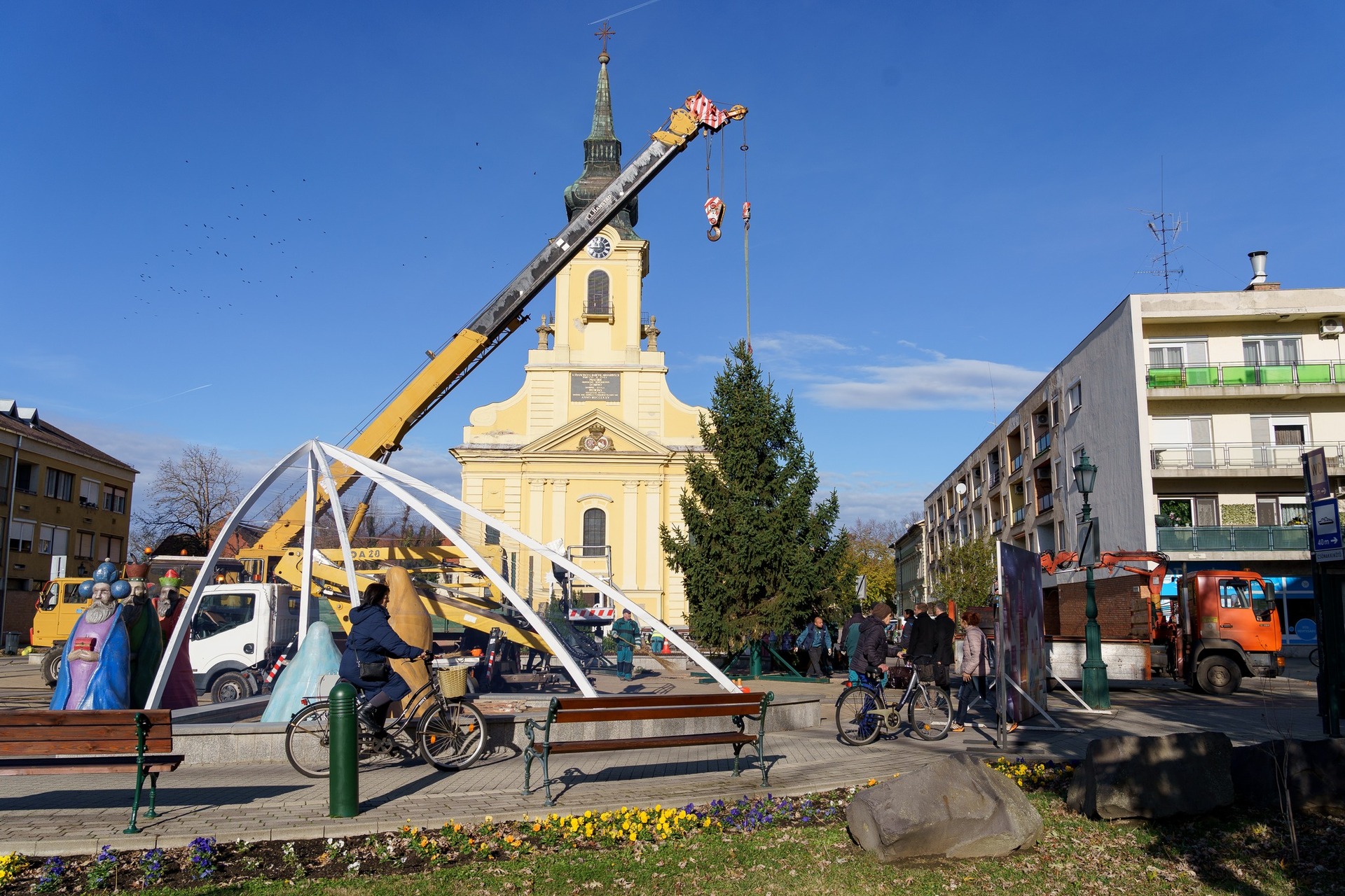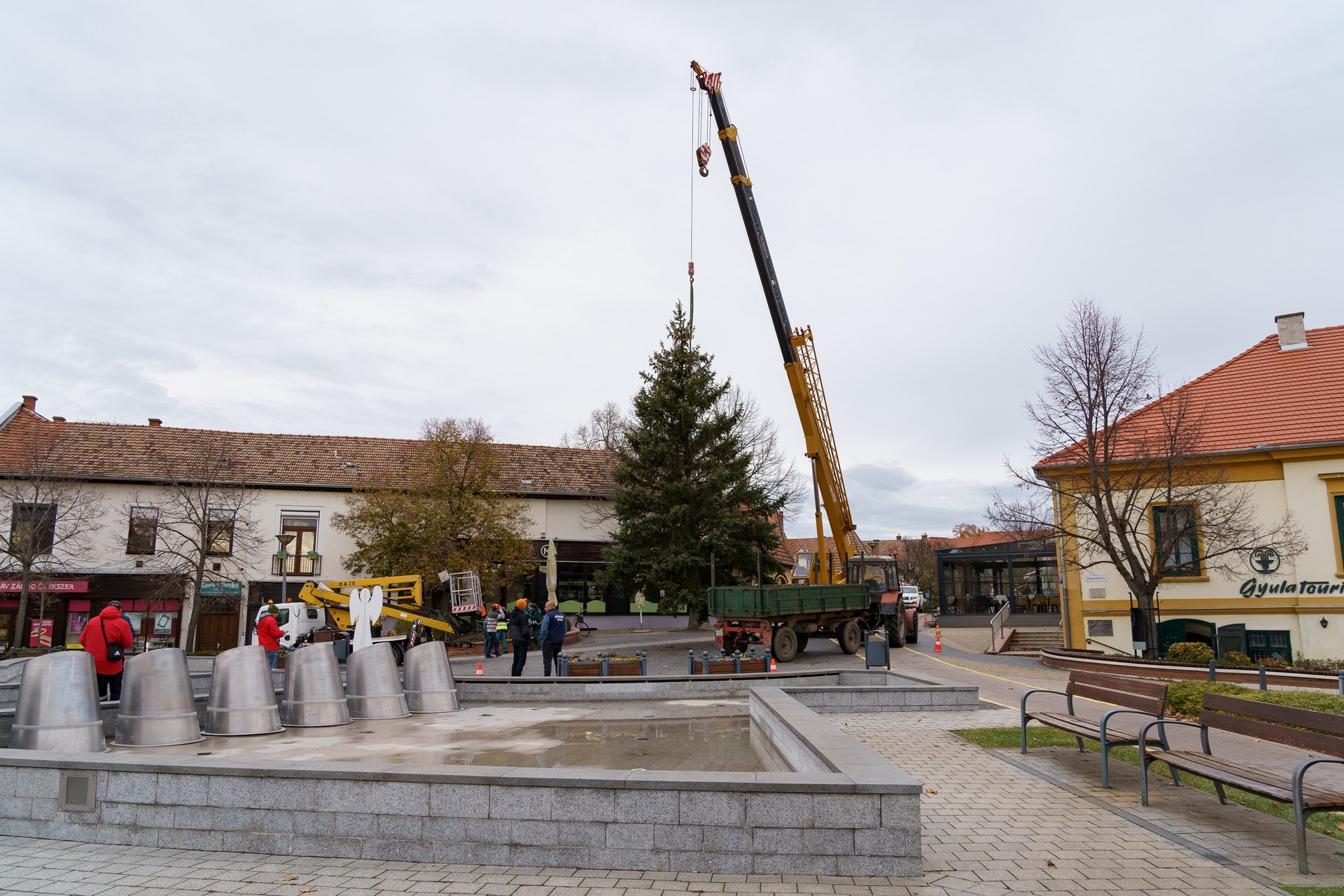 Helyükre kerültek a városi karácsonyfák a Kossuth téren és a Harruckern téren, a fenyőket idén is gyulai polgárok ajánlották fel – emelte ki posztjában Görgényi Ernő polgármester.
