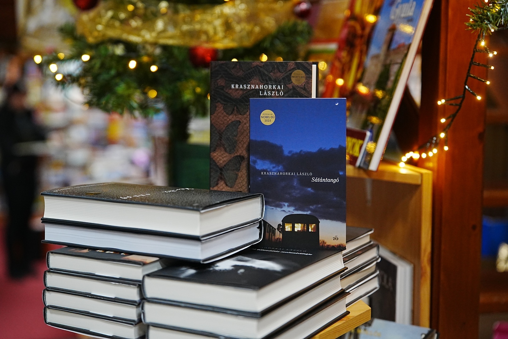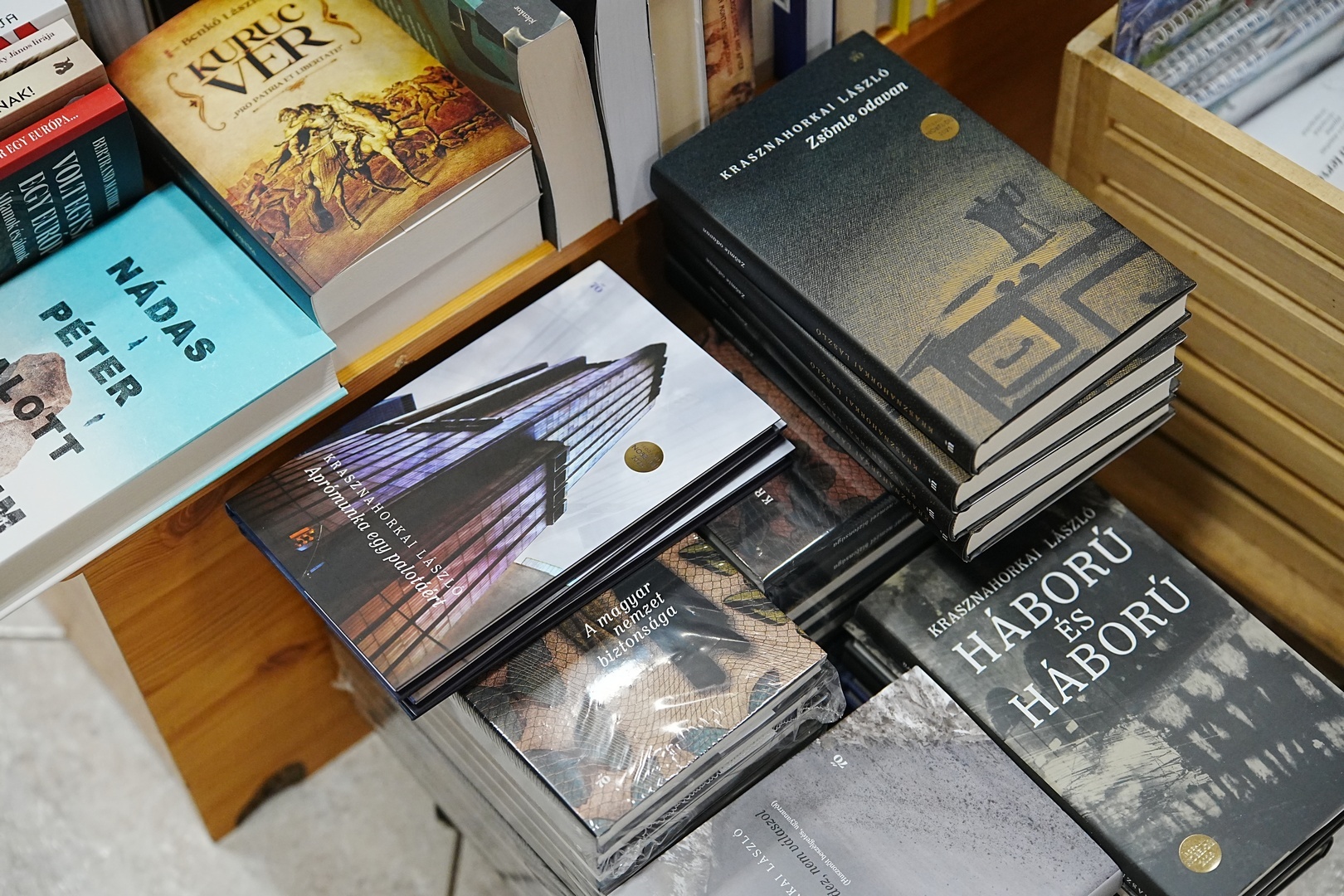 Jeszenszky Ákosné Marianna üzletvezető kiemelte, üzletükben a megnyitásuk óta kaphatók a gyulai Nobel-díjas író, Krasznahorkai László kötetei, amelyeket mostantól még nagyobb büszkeséggel árulhatnak. Hozzátette, a szerző korábbi kötetei és újonnan megjelent könyve is folyamatosan beszerezhető náluk.