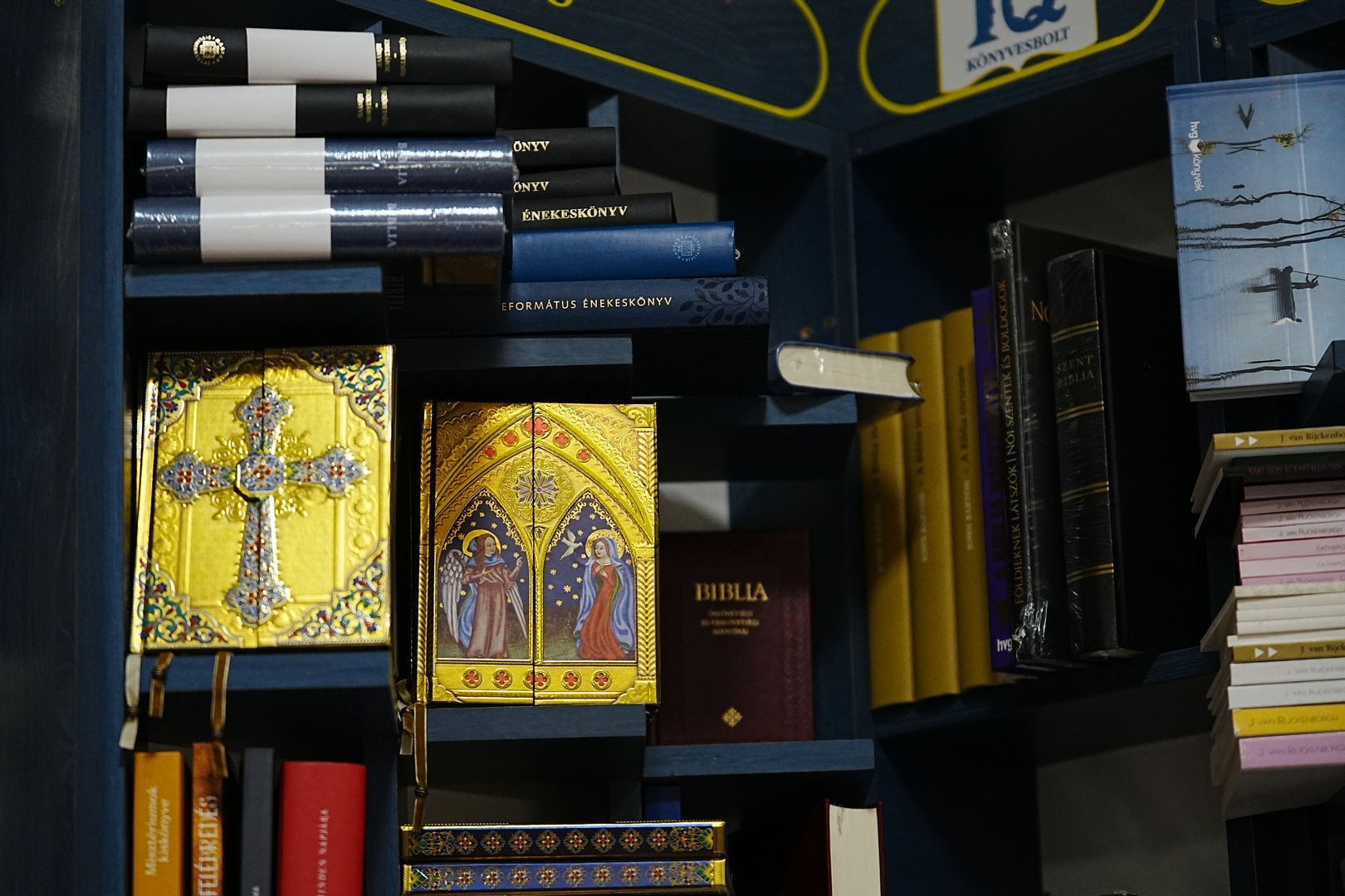 Az üzletvezető rámutatott, a biblia is szép ajándék lehet a fa alatt; ebből is többfélét tartanak, gyerekeknek és felnőtteknek szólót is.