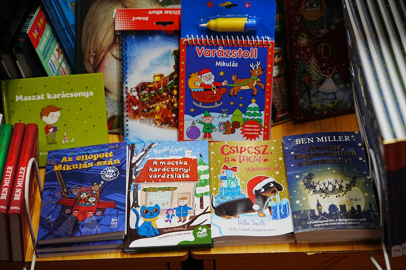 Karácsonyi témájú könyvből szintén rengeteg van a boltban, romantikus regények, füveskönyvek, karácsonyi történetek is találhatók a polcokon – tudtuk meg.