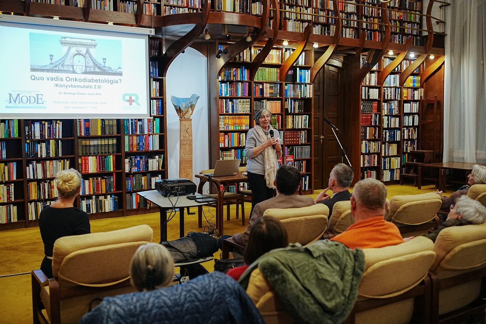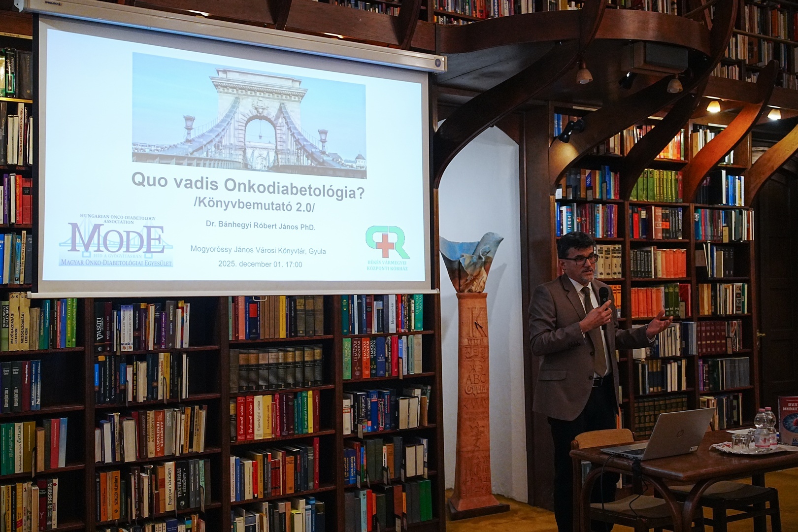 A rendezvény nemcsak egy könyv – a Bevezetés az onkodiabetológiába bővített, 2. kiadásának – megszületéséről szólt, hanem egy fiatal, Magyarországon is egyre nagyobb jelentőségű tudományterületről, az onkodiabetológiáról is. Bánhegyi Róbert főorvos diasorának kezdőképén jogosan merült fel: „Quo vadis (vagyis merre mész), onkodiabetológia?” A bemutató házigazdája a szülővárosában, Gyulán rendszeresen műsorvezetést vállaló, a jó ügyek mellett mindig teljes mellszélességgel kiálló Dombóvári Vanda volt, aki a megszokottan lendületes, mégis közérthető megjegyzéseivel segítette a szakmai és laikus közönséget eligazodni a daganatos betegségek és a cukorbetegség összetett világában.