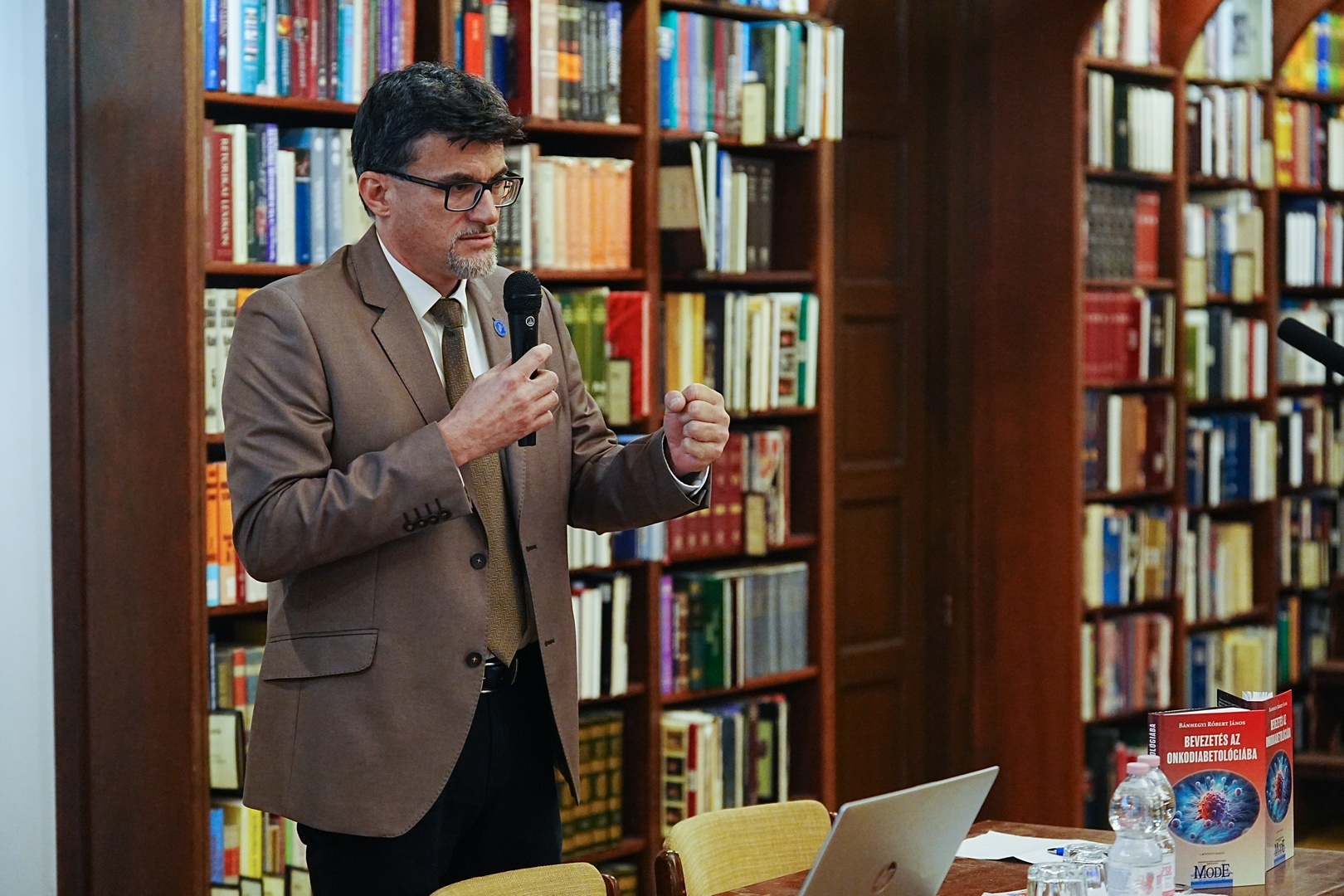 Ünnepi hangulat, telt ház és komoly szakmai érdeklődés fogadta december 1-jén Bánhegyi Róbert János Bevezetés az onkodiabetológiába című, bővített kiadásban megjelent kötetének bemutatóját.