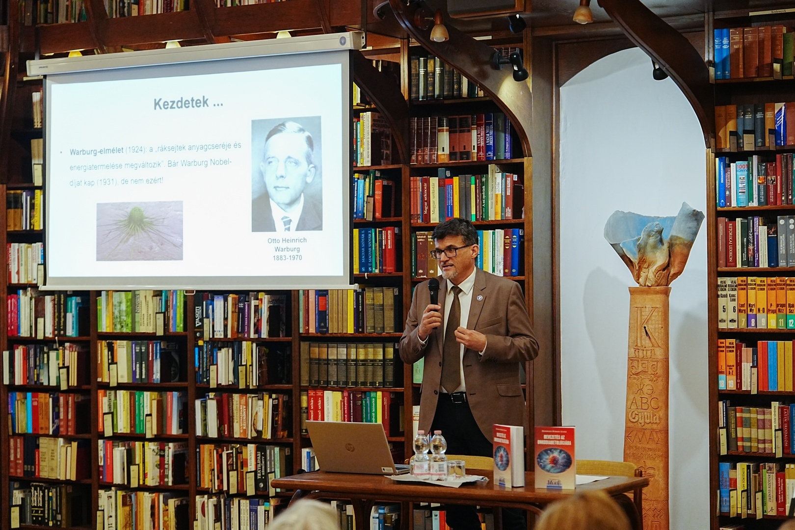 A beszélgetés középpontjában természetesen maga a szerző, Bánhegyi Róbert főorvos állt, aki onkológusként, hematológus belgyógyászként 2001 óta kutatja a daganatos betegségek, a cukorbetegség és az elhízás közötti bonyolult összefüggéseket. A bemutatón elmondta: a könyv alapgondolata – éppen egy szenteste – abból a mindennapi klinikai tapasztalatból született, hogy a daganatos betegek jelentős részénél valamilyen anyagcsere-zavar, leggyakrabban diabétesz vagy alapvető inzulinrezisztencia is jelen van. Ezek a kórképek nem külön-külön, hanem egymást erősítve befolyásolják a gyógyulás esélyeit.