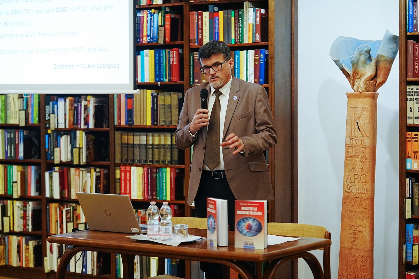 Dombóvári Vanda kérdései révén szó esett a könyv születésének személyesebb hátteréről is. Bánhegyi Róbert beszélt doktori kutatásáról (a tapasztalatait összegző PhD-disszertációja is helyet kapott a könyv utolsó fejezetében), a békéscsabai és gyulai klinikai munka tanulságairól, valamint arról, hogyan vált világviszonylatban is jegyzett fogalommá az általa megnevezett tudományterület, az onkodiabetológia. A szerző szerint a jövő egyik kulcskérdése az interdiszciplináris együttműködés: az onkológus, a diabetológus, a dietetikus és a háziorvos közös munkája.