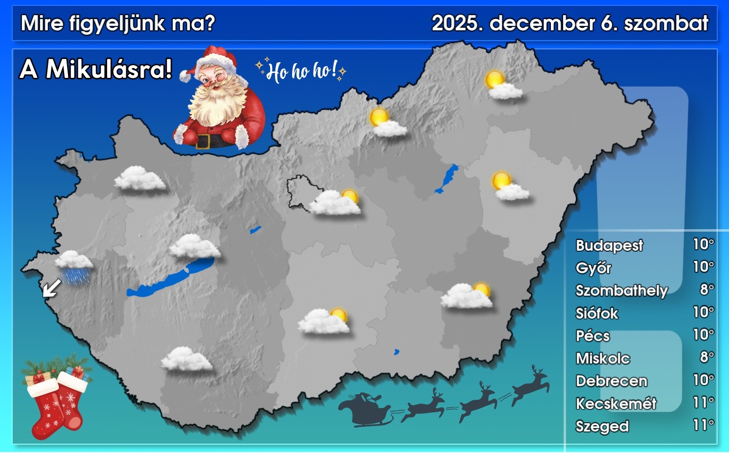 Ma a nyugati vármegyékben erősen felhős vagy borult lesz az ég, az eső azonban a nyugati határvidéken is mindenütt megszűnik legkésőbb délelőttre, ezt követően estétől, késő estétől lehet újra csapadék előbb északnyugaton, majd másutt is. A középső tájakon és a keleti vármegyékben napközben szakadozottabb lesz a felhőzet, ott rövidebb-hosszabb napos időszakokra is számítani lehet. Gyenge vagy mérsékelt marad a légmozgás. A csúcshőmérséklet bőven a sokévi átlag felett, 7 és 12 fok között alakul – közölte a HungaroMet NZrt.