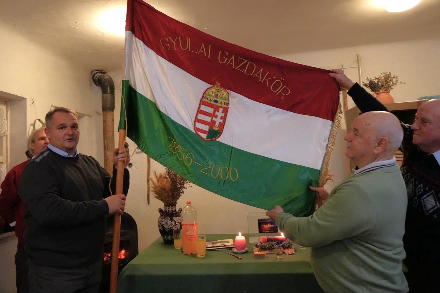 Az alpolgármester közösségi oldalán arra is kitért, hogy a két egyesület decemberi adventi vacsoráján Werner György, a Gyulai Gazda és Polgári Egyesület elnöke ünnepélyesen átadta a gazdakör több mint 15 éve őrzött zászlaját Veres Andrásnak, a Hagyományőrző Gazda és Kertbarát Kör megválasztott elnökének.