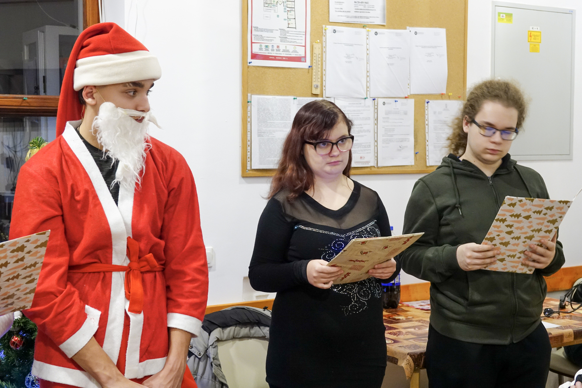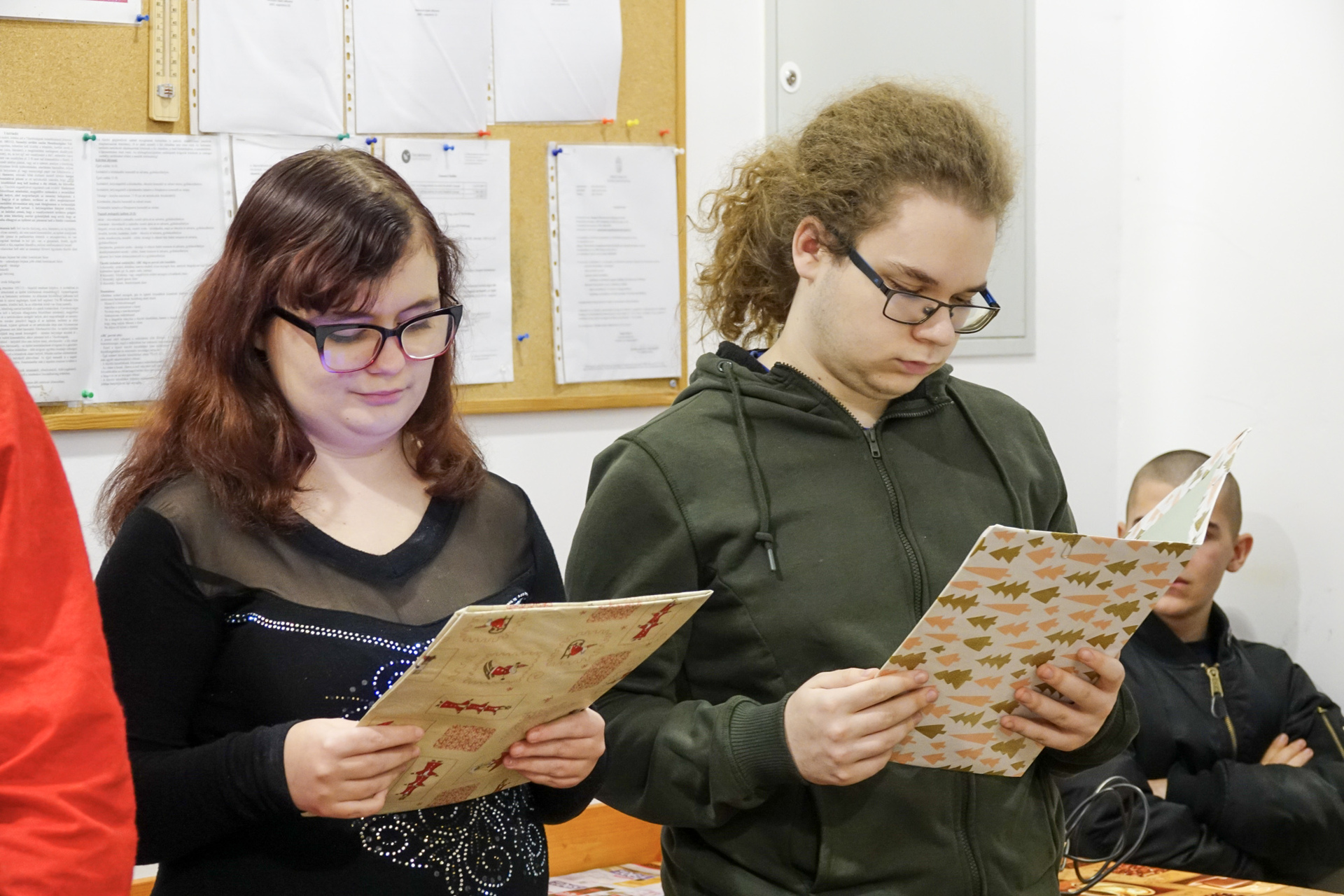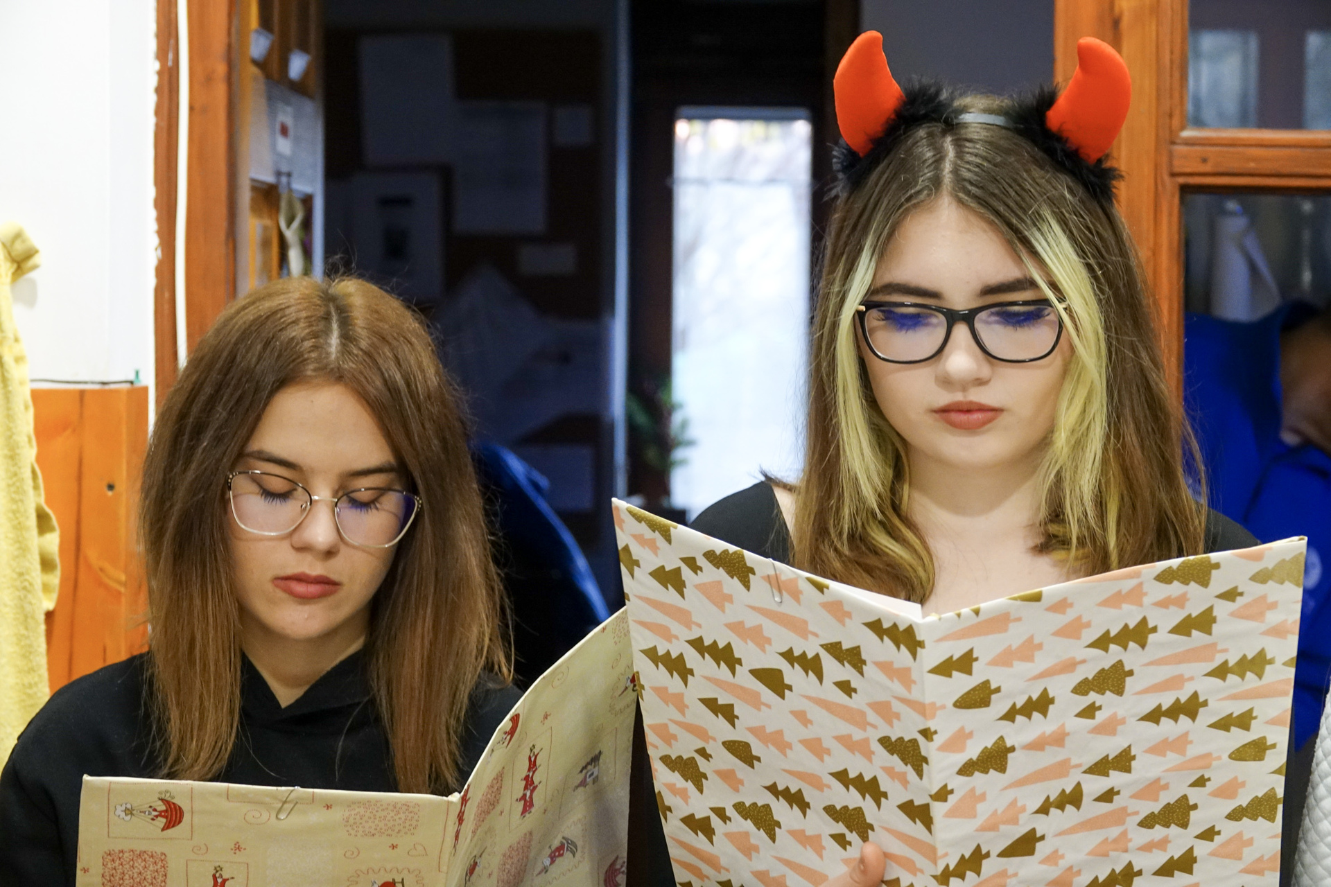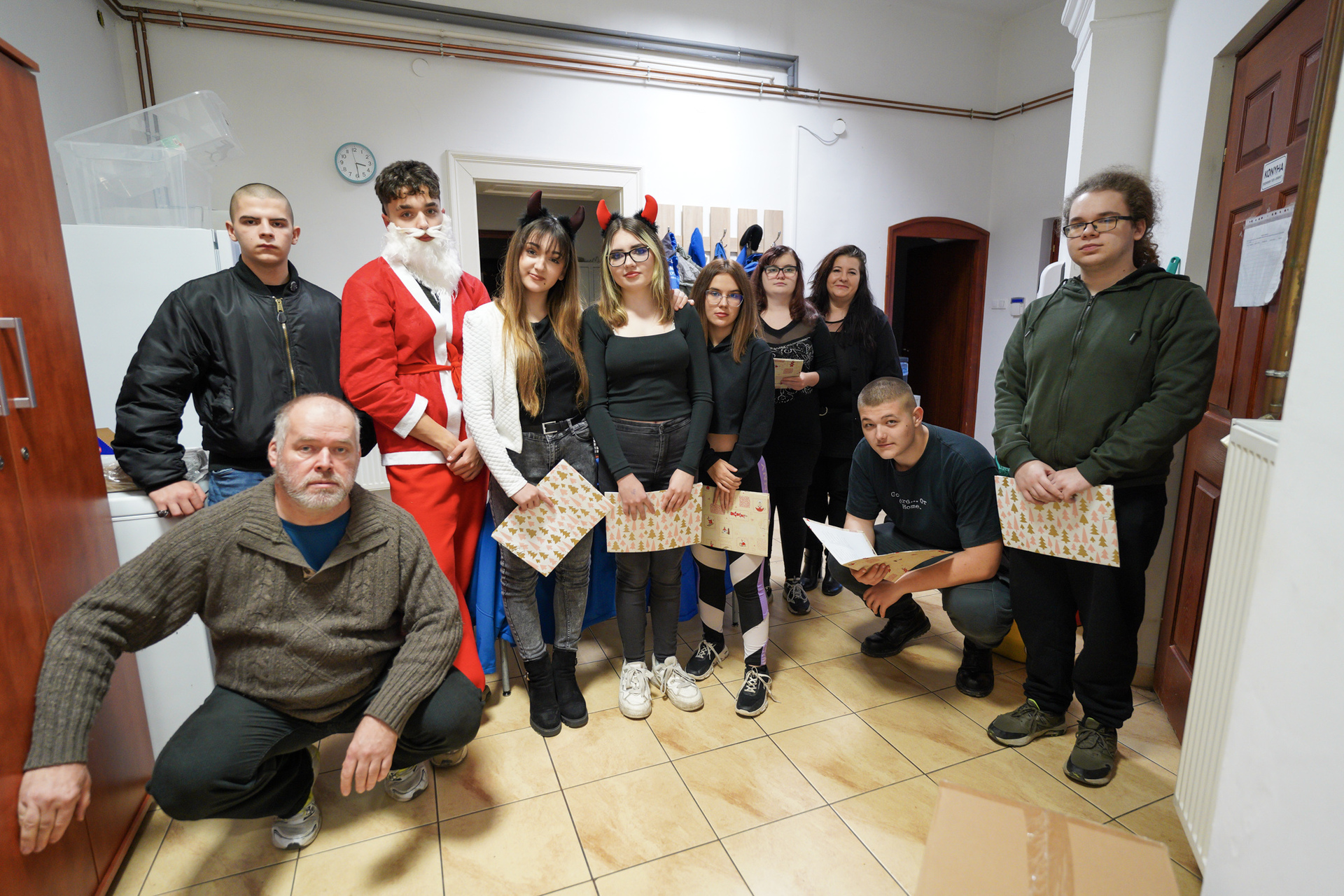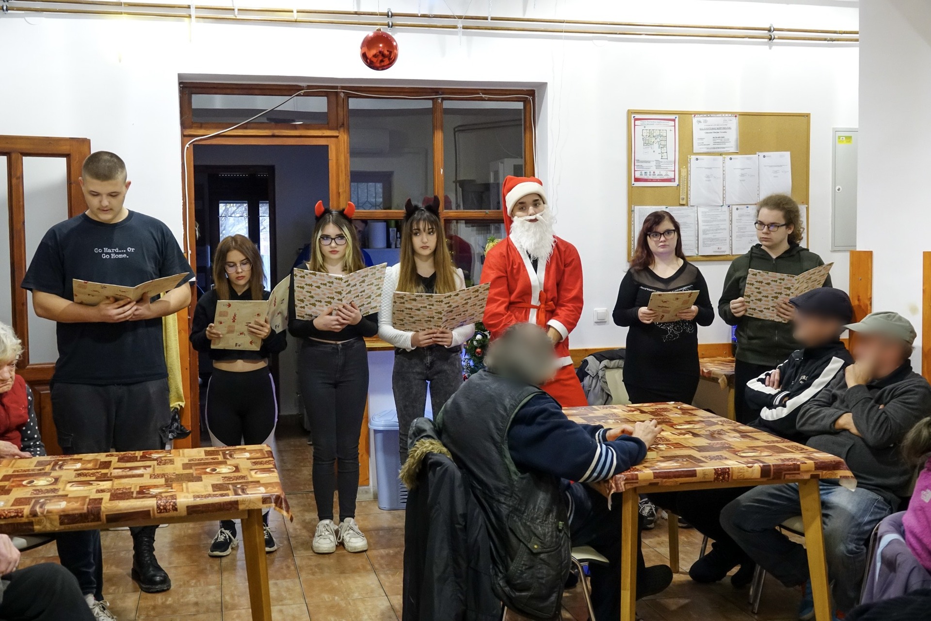 Idén is meglátogatták az ünnepek alkalmából a gyulai hajléktalanszálló nappali melegedőjét a Harruckern János-középiskola kollégistái. A diákok meleg étellel, süteménnyel és műsorral készültek.