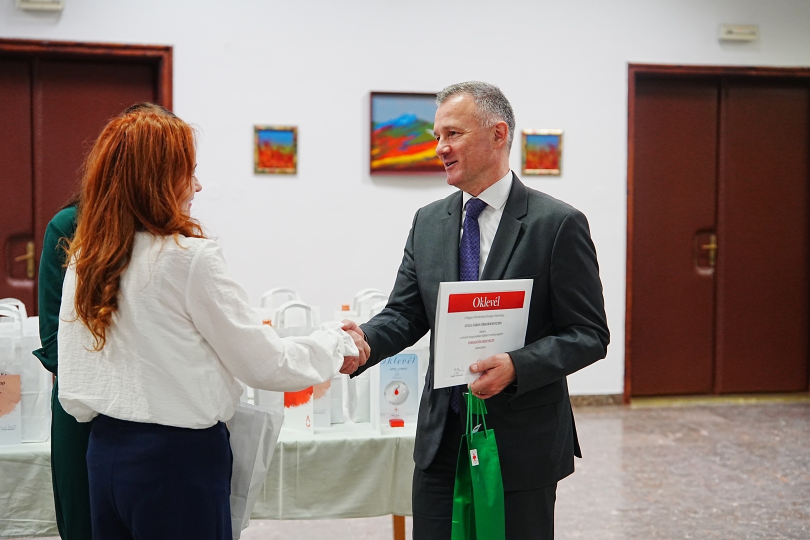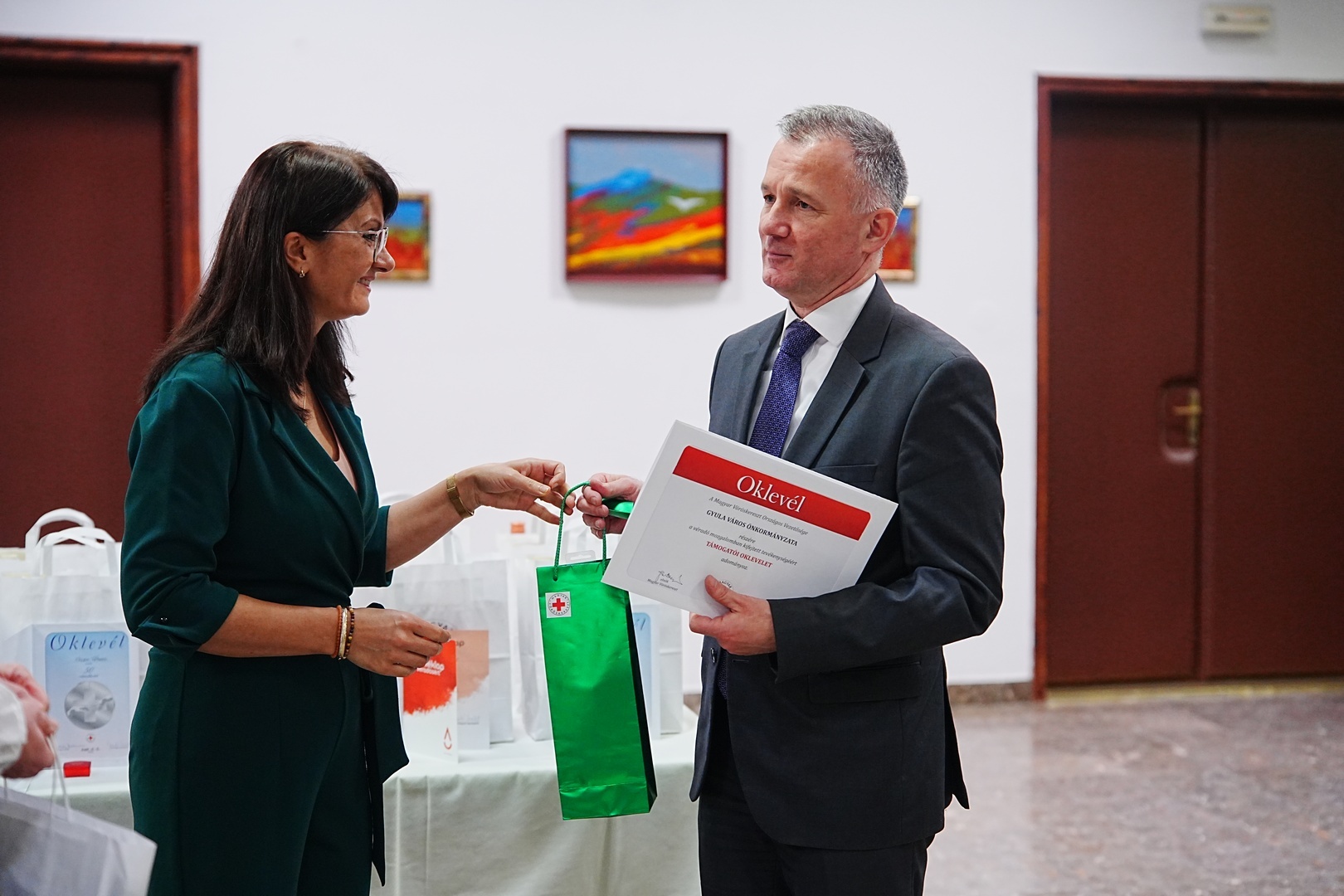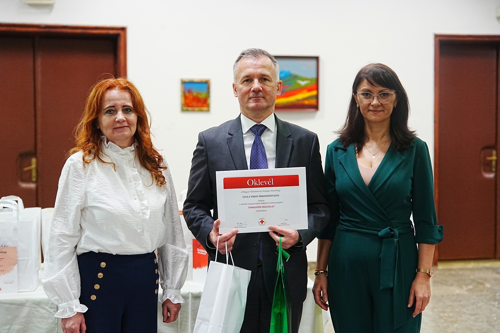 Az ünnepségen bejelentették: a Magyar Vöröskereszt országos vezetősége támogatói oklevelet adományozott a gyulai önkormányzatnak a véradómozgalomban kifejtett tevékenységükért.