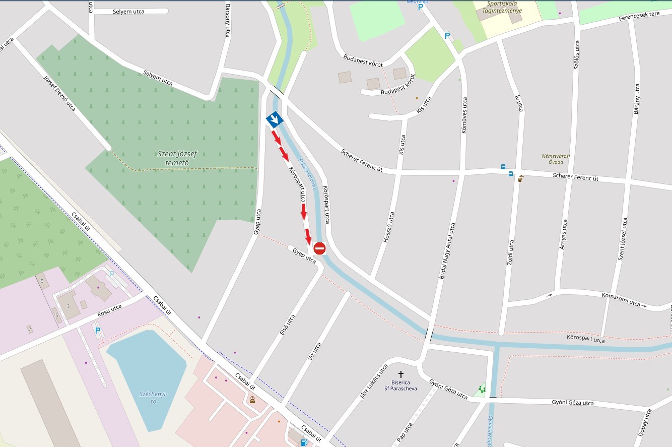 A Köröspart utca (az Első utca és a Gyep utca közötti szakaszon) egyirányú lesz a Gyep utca felől az Első utca irányába; a kerékpárosok továbbra is mindkét irányban közlekedhetnek.
