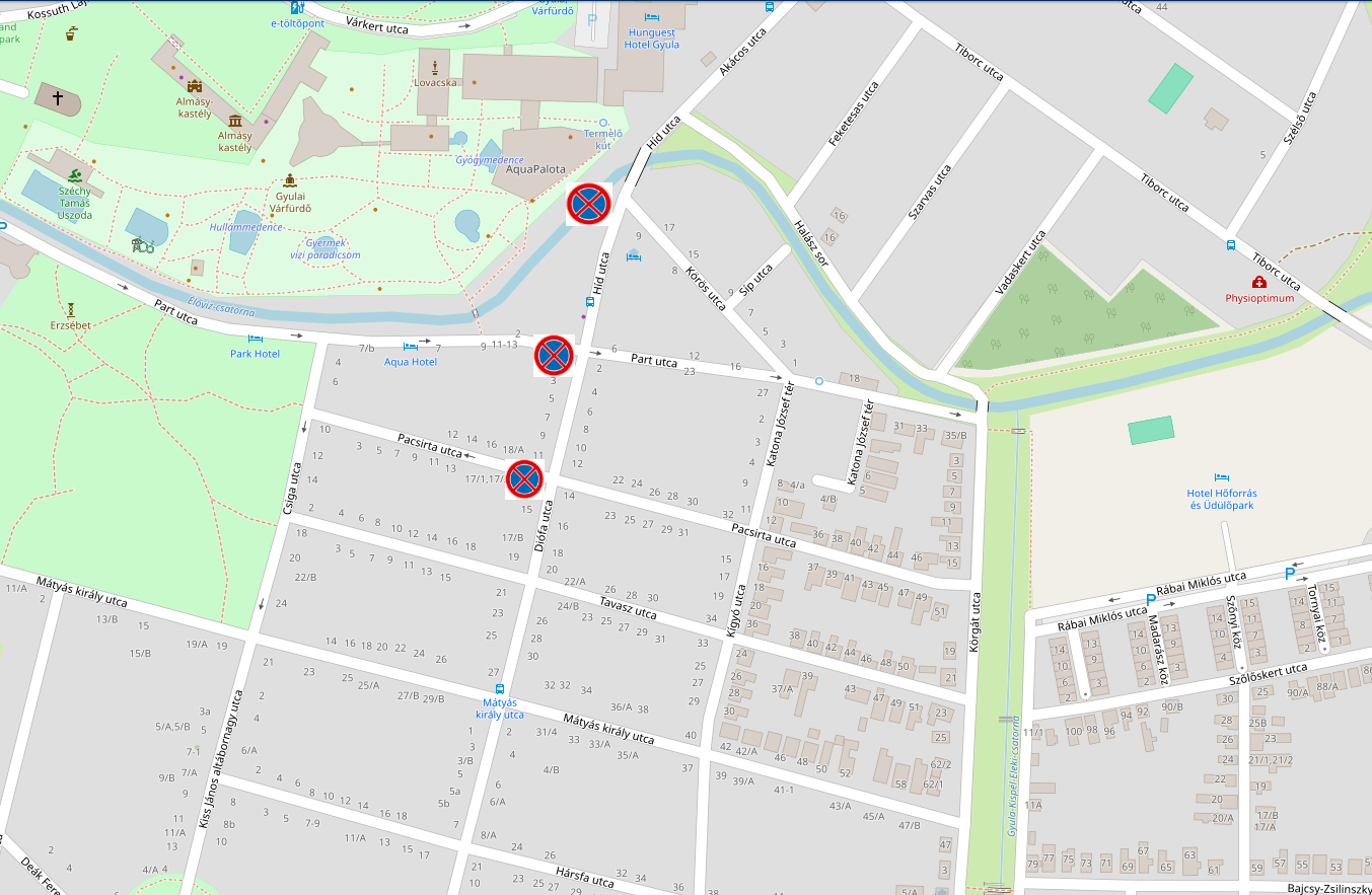 A Híd utca Körös utca és Part utca közötti szakaszán, valamint a Diófa utca Part utca és Tavasz utca közötti szakaszán megállási tilalmat vezetnek be, a Temesvári út irányába tartva, a jobb oldalon.