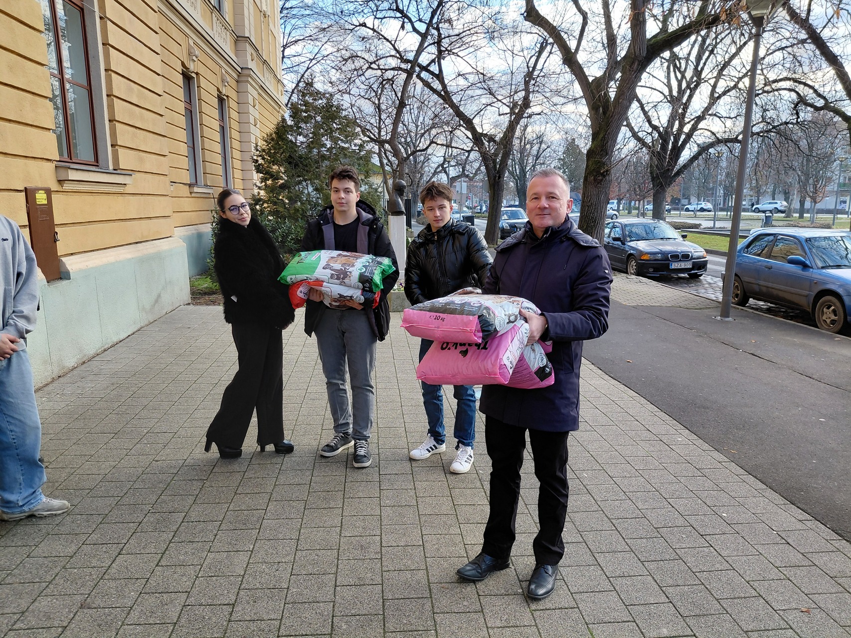 Idén is gyűjtést szerveztek a Gyulai Állatotthon Alapítványnak a Karácsonyi János katolikus gimnázium diákjai. Az adományokat december 19-én adták át az intézmény épülete előtt.