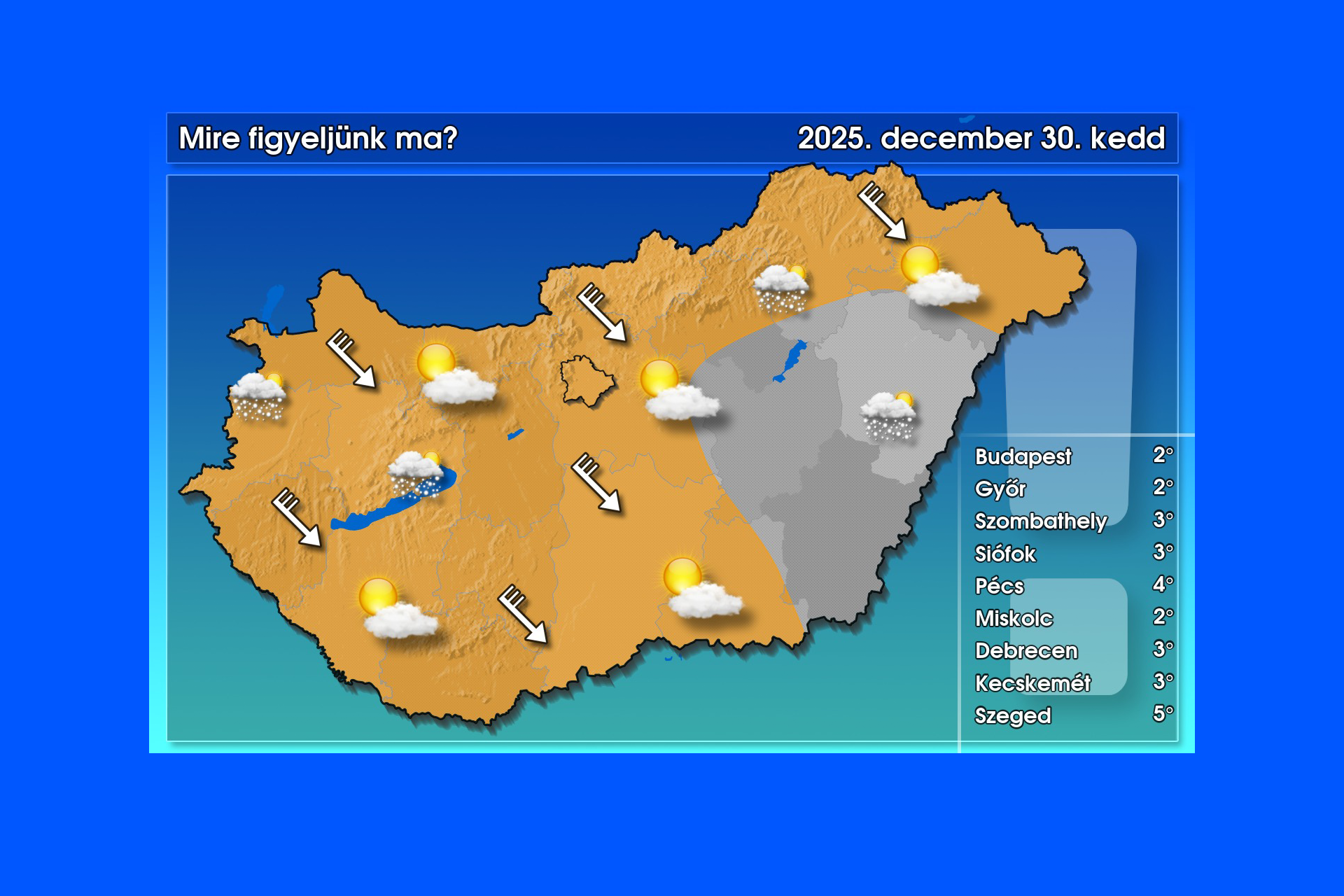 Szeles napunk lesz ma is, az ország legnagyobb részén megerősödik az északnyugati szél, amely még este, éjjel is élénk, erős marad. A nap első felében hidegfront szakadozott felhőzete lesz felettünk, ebből helyenként előfordulhat hózápor (lepel-1, 2 cm), délután már döntően napos idő valószínű, és ekkor már csapadékra is kicsi az esély. A csúcshőmérséklet 0 és +5 fok között alakul, de ilyen szélben a hőérzetünk ennél lényegesen alacsonyabb lesz! De mennyivel? – tehetnénk fel a kérdést. Nos, például +2 fokban 45-55 km/h-s széllökések esetén a hőérzet -6, -7 fok körüli – írta ma reggel közösségi oldalán a HungaroMet.