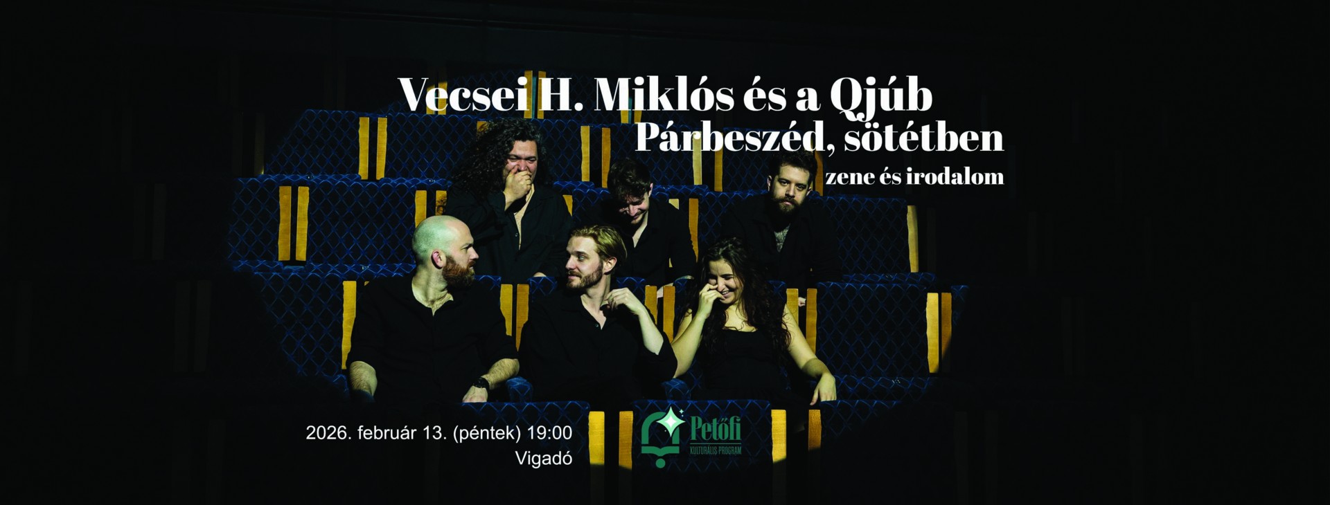 Vecsei H. Miklós és a Qjúb közös, Párbeszéd, sötétben című irodalmi-zenei estjére várják az érdeklődőket február 13-án a Vigadóban, a Jókai 200 programsorozat és a Petőfi Kulturális Program keretében. A belépés díjtalan, de előzetes regisztrációhoz kötött.