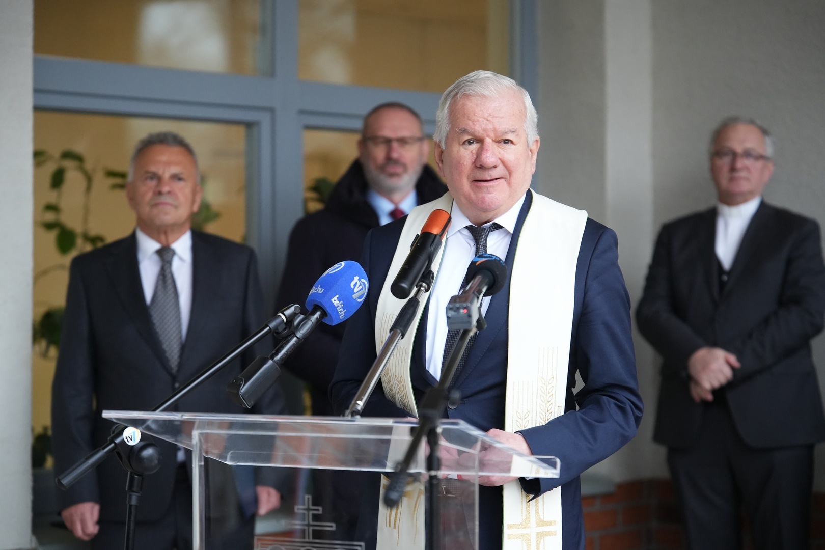 A köszöntők után következett a szalagátvágás, majd Kiss-Rigó László szeged-csanádi püspök áldotta meg az épületet.