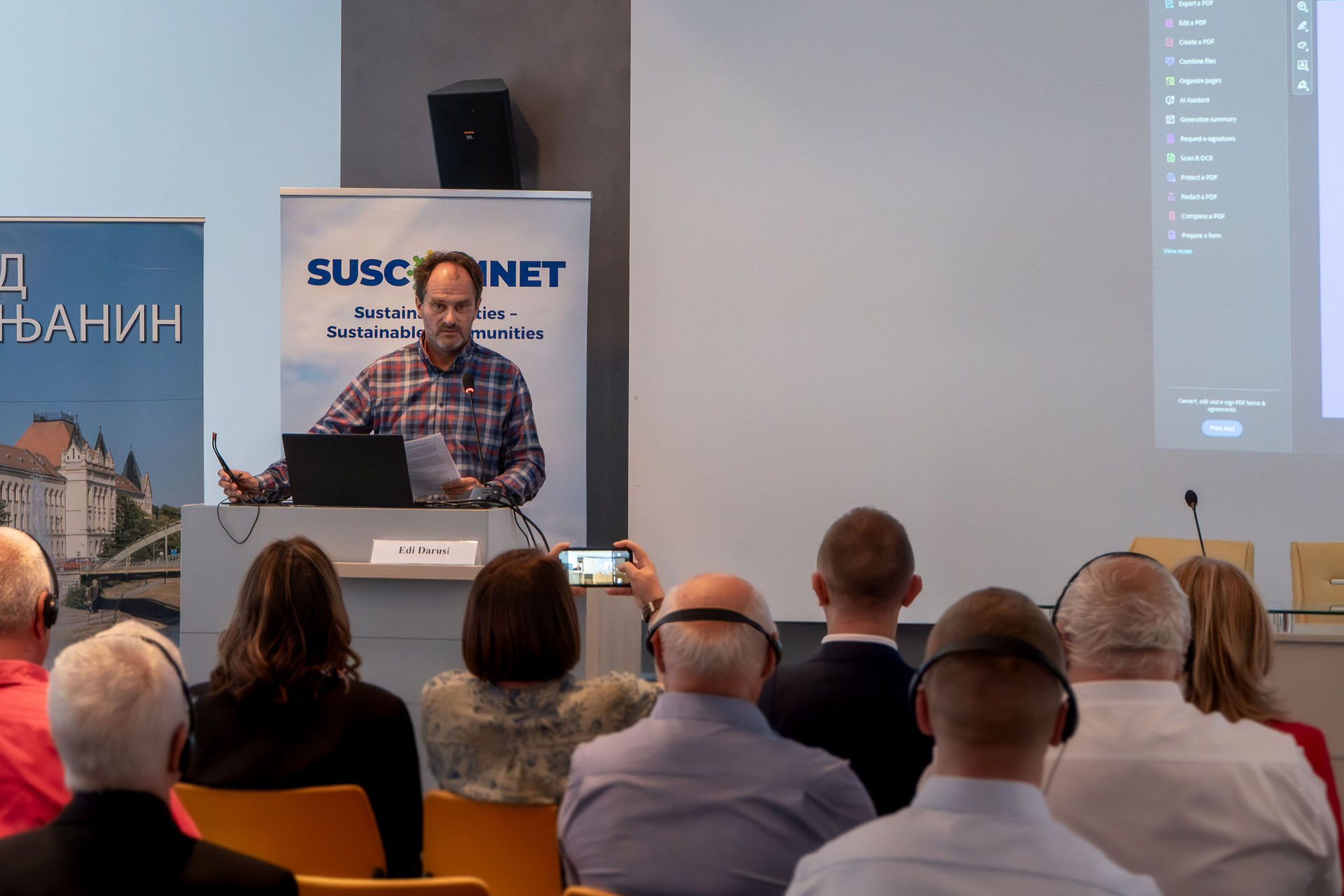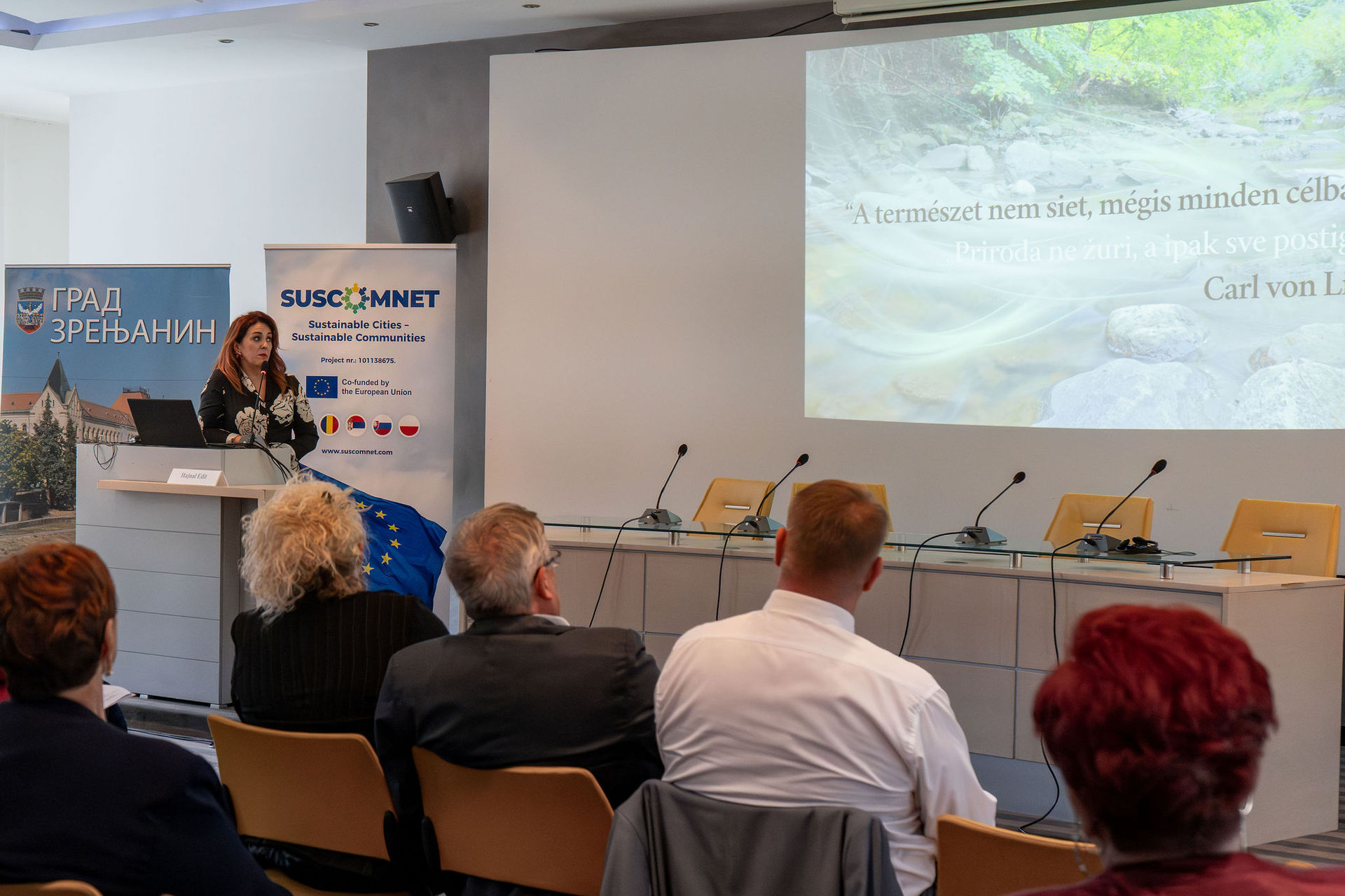 Ana Seke „Fenntartható városok és biodiverzitás-védelem” című előadásában Szerbia EU-zöldprogramokhoz kapcsolódó fenntarthatósági intézkedéseit ismertette. Bemutatta a vizes élőhelyek és védett területek helyreállítását célzó projekteket, különös tekintettel az inváziós fajok visszaszorítására és a biológiai sokféleség megőrzésére. Kiemelte a Zrenjanin, Belgrád és Újvidék részvételével megvalósuló városi programokat, amelyek a zöld infrastruktúra fejlesztésére, a körforgásos gazdaság támogatására és az alacsony szén-dioxid-kibocsátású megoldások bevezetésére épülnek. Az előadás hangsúlyozta a közösségi részvétel és a természetalapú megoldások szerepét az éghajlatváltozással szembeni alkalmazkodóképesség erősítésében.