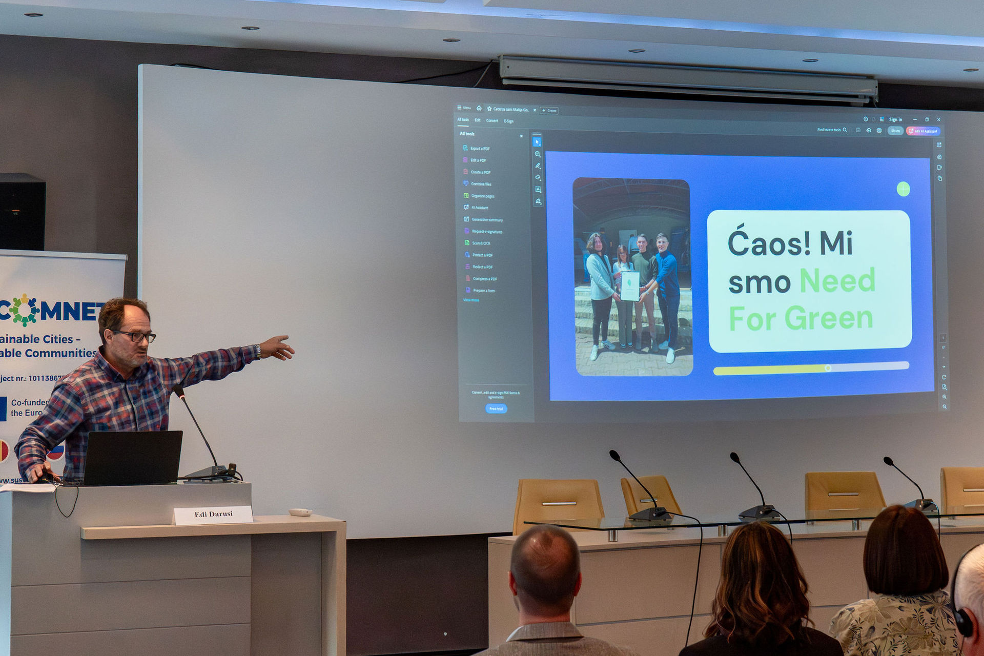 Mihajlo Manigodić a fiatalok szerepét hangsúlyozta a fenntartható átmenetben, bemutatva a nagybecskereki ifjúsági programokat és közösségi kezdeményezéseket.