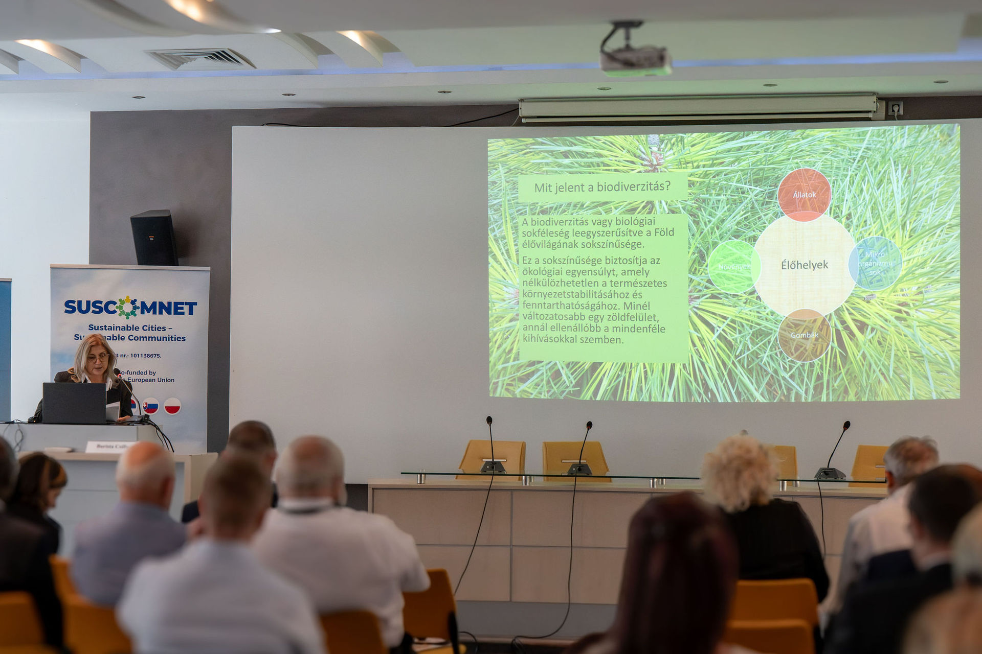 Burista Csilla Csíkszereda biodiverzitás-védelmi intézkedéseit ismertette, különös tekintettel a zöldterületek fejlesztésére és a közösségi programokra.