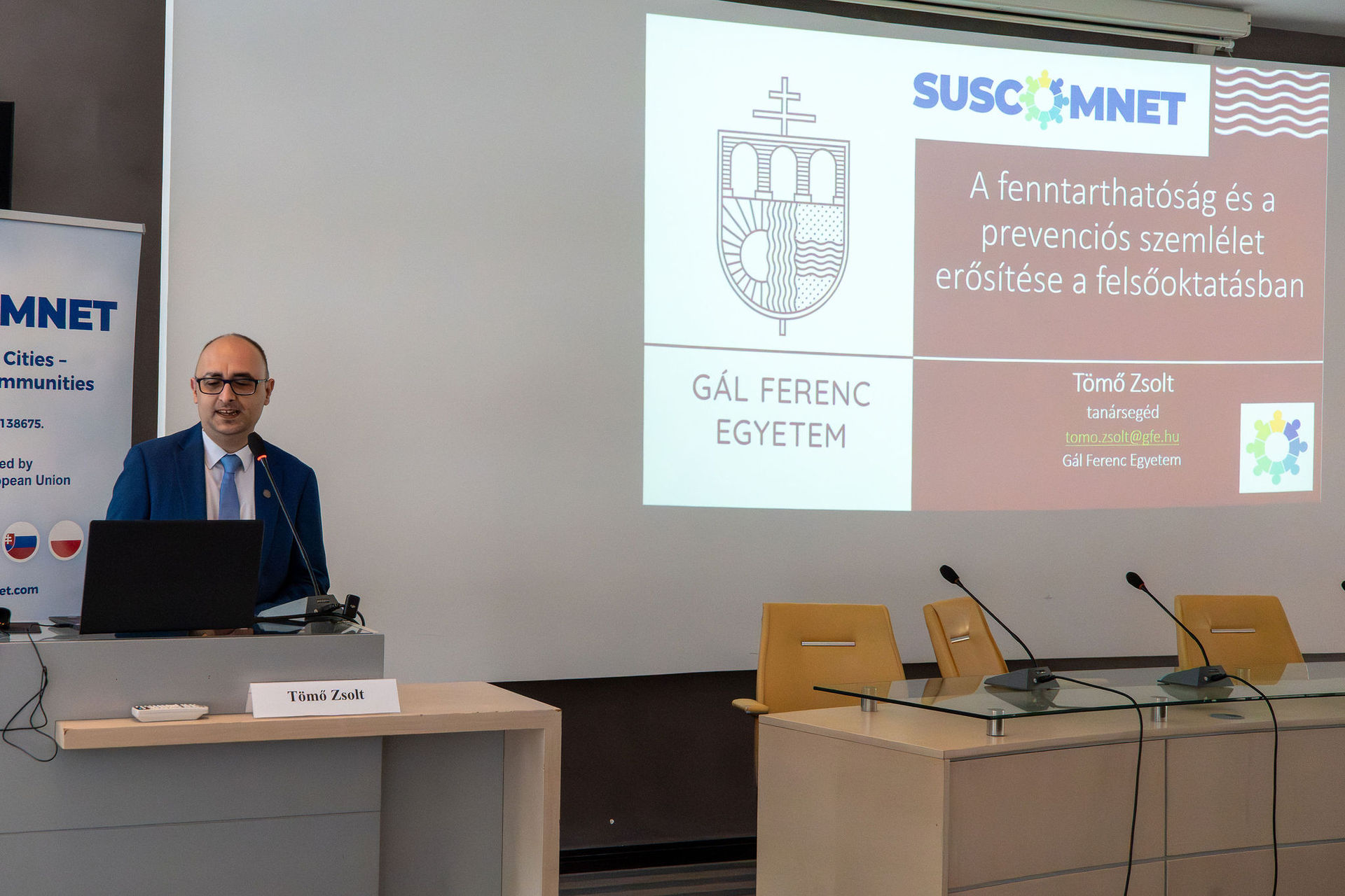 Zsolt Tömő a fenntarthatóság és prevenció felsőoktatásba történő integrálását ismertette a Gál Ferenc Egyetem példáján keresztül.