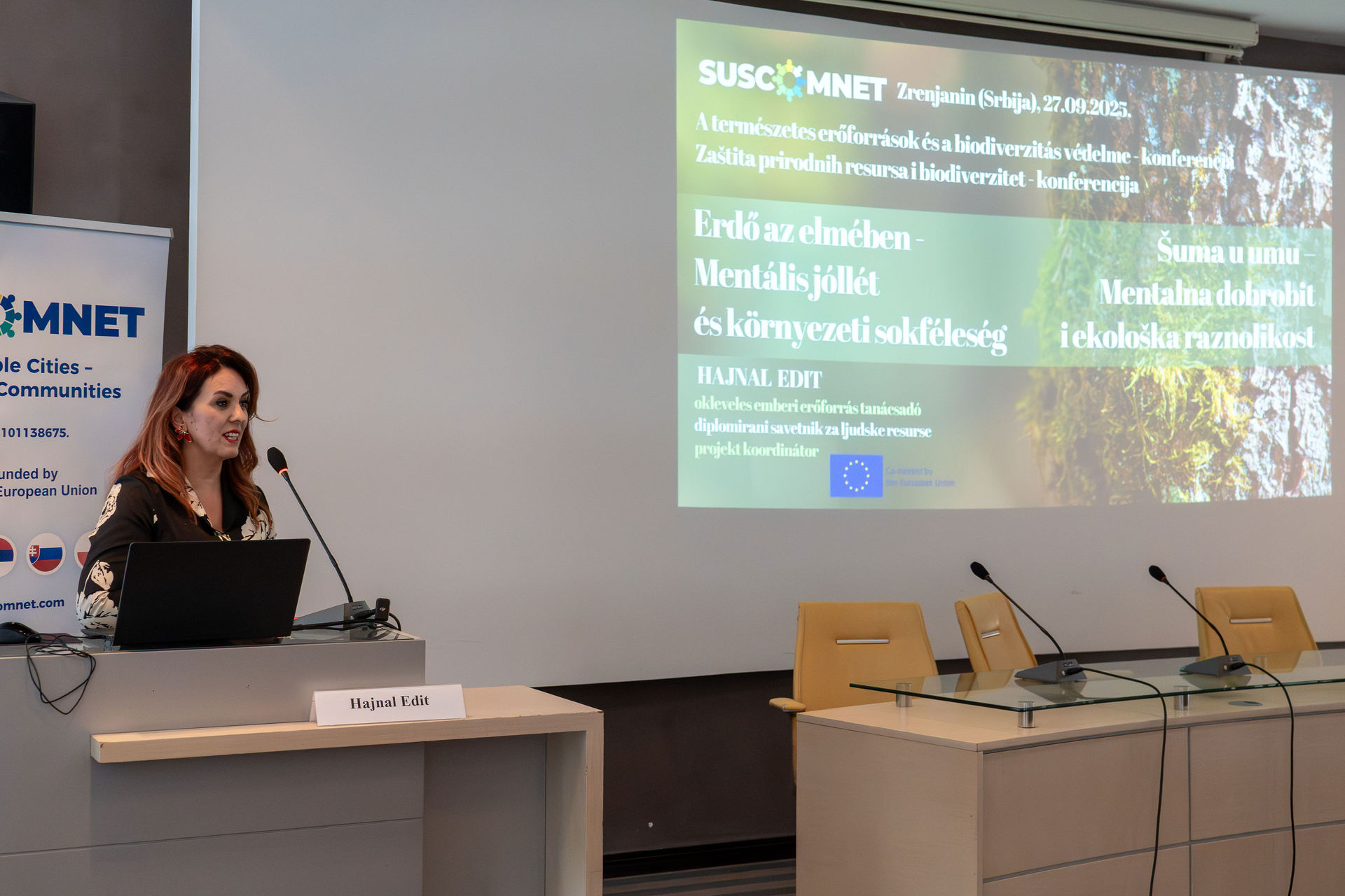 Vasilija Stanić az Európai területi együttműködési programok szerbiai tapasztalatait ismertette, kiemelve a környezetvédelemre és biodiverzitás-megőrzésre irányuló projekteket. Konkrét példák között szerepelt a magyar–szerb partnerségi projekt a pannon füves területek és madárfajok védelmére, a román–szerb „Vízügyek őrei” program, valamint a horvát–szerb BIOSOL és BIOSOL+ kezdeményezések. Az előadás rávilágított arra, hogy a programok nemcsak környezeti eredményeket hoznak, hanem erősítik a régiók közötti együttműködést és a társadalmi tudatosságot is.