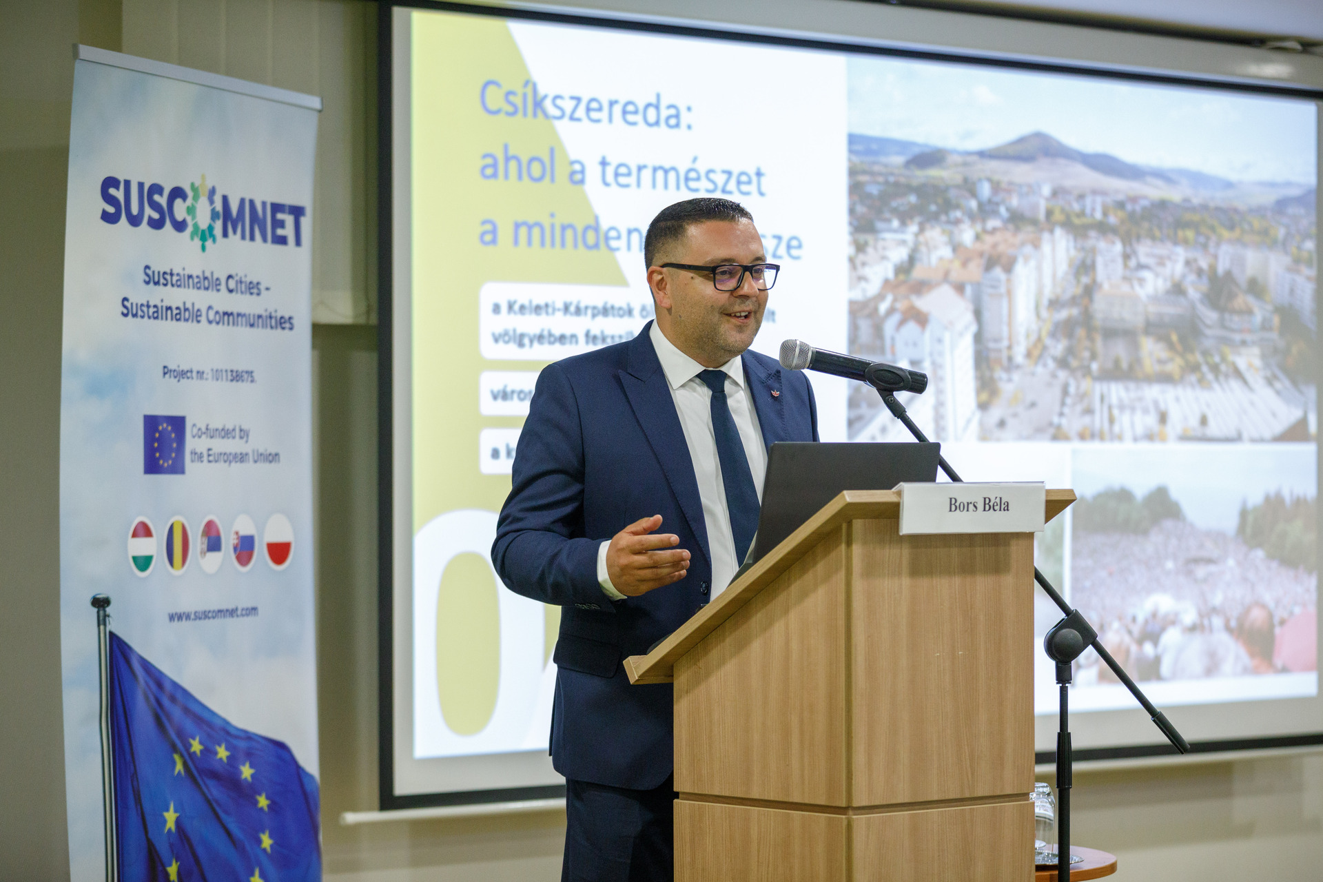 Bors Béla, Csíkszereda alpolgármestere a város fenntarthatósági stratégiáit ismertette, különös tekintettel az energiagazdálkodásra, a hulladékgazdálkodásra és a zöldterület fejlesztésre. Részletes adatokat mutatott be a közvilágítás korszerűsítéséről, az épületenergetikai fejlesztésekről, a digitális alapú szelektív hulladékgyűjtési rendszerről, valamint a városi zöldfelületek bővítéséről. A fenntartható közlekedés – például a kerékpárutak fejlesztése és a CNG-meghajtású autóbuszok beszerzése – szintén a város átfogó környezetvédelmi stratégiájának részét képezi.