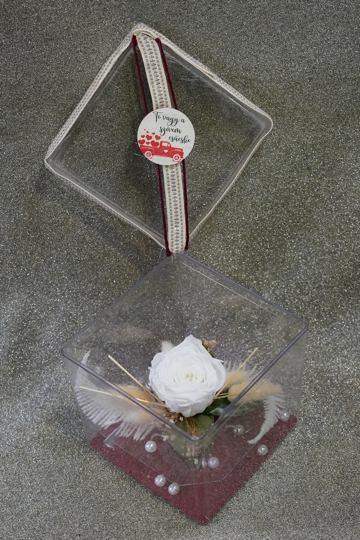Érdemes örökrózsás kompozíciókat ajándékozni szeretteinknek, hiszen a tartósított virágok rendkívül sokáig szépek maradnak lakáskörülmények között – mondta a Patócsy utcai Tünde virágüzlet tulajdonosa.