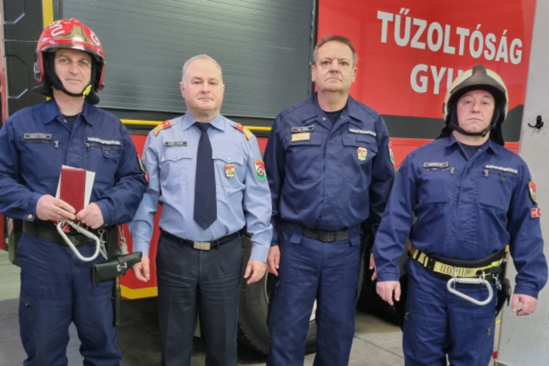 A Gyulai Hivatásos Tűzoltó-parancsnokságon dolgozó Hundzsa Ferenc címzetes tűzoltó százados a 20 év után járó szolgálati jelet kapta meg. Dobroczki Pál tűzoltó őrmester a tűzoltó szakmai képzésen nyújtott kiemelkedő tanulmányi eredménye miatt vehetett át elismerést.