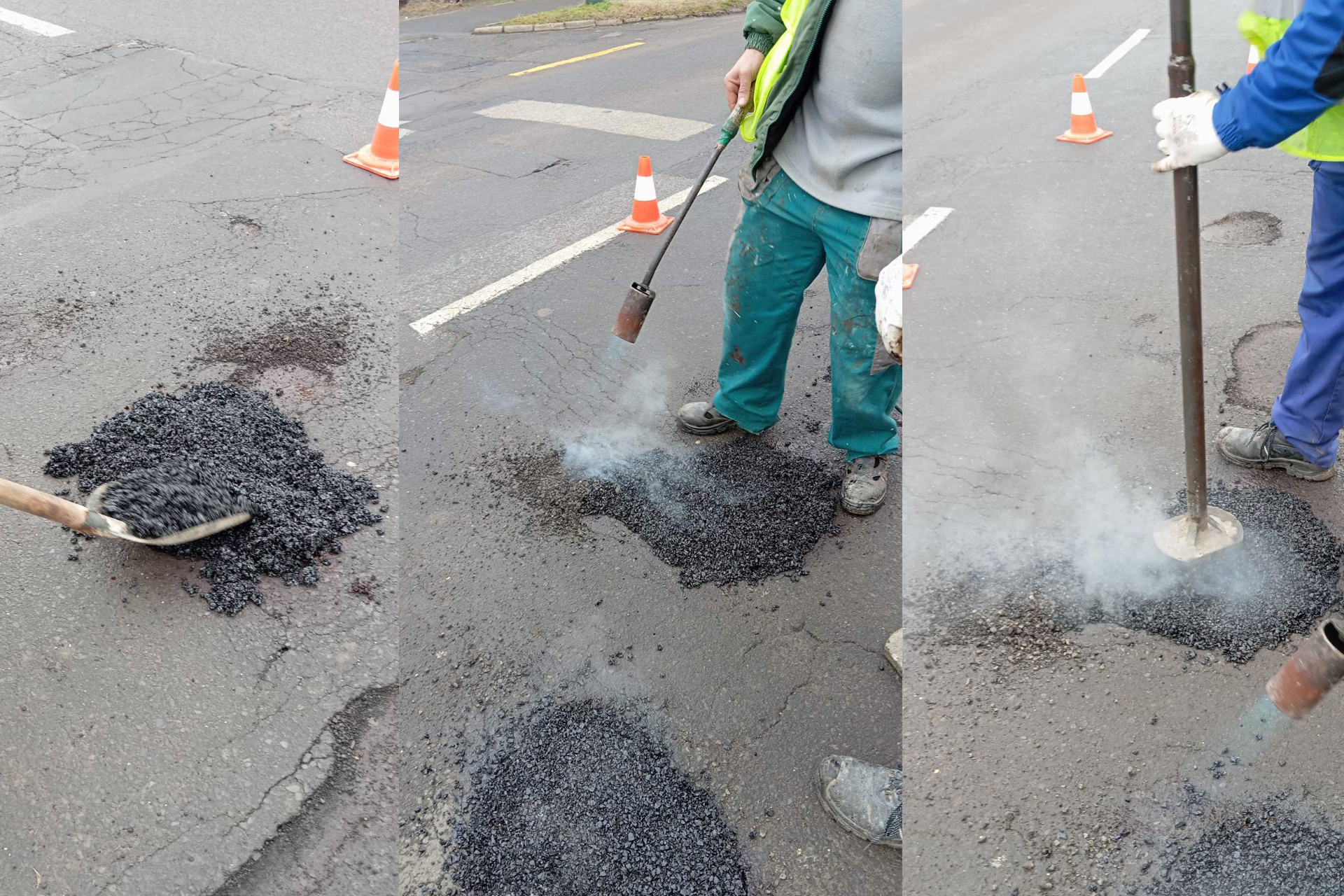 Eddig egy tonna hidegaszfaltot használtak fel a Gyulai Közüzemi NKft. munkatársai