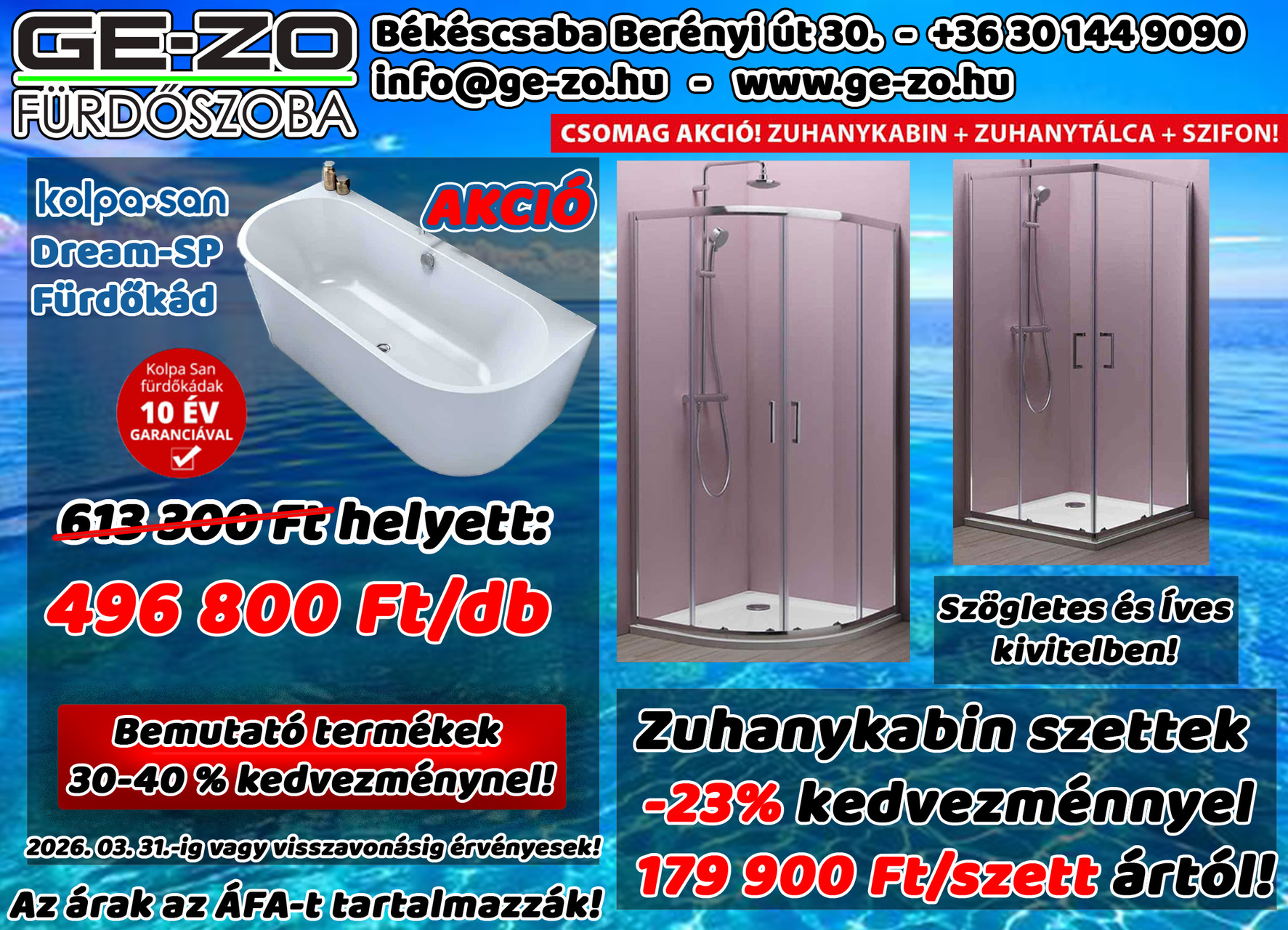 Kedvezményekkel várják a vevőket a GE-ZO Fürdőszoba Stúdióban, ahol a vásárlók mindent megkaphatnak, ami egy fürdőszobához kell.
