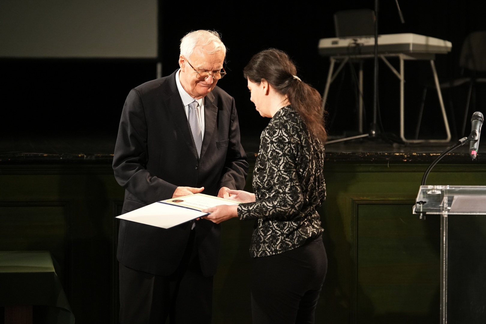 A folytatásban átadták az Implom József-díjat, amelyet idén Schirm Anita nyelvész, a Szegedi Tudományegyetem Bölcsészet- és Társadalomtudományi Kar, Magyar Nyelvi és Irodalmi Intézet Magyar Nyelvészeti Tanszékének habilitált docense, valamint Minya Károly nyelvész, szókincskutató, a Nyíregyházi Egyetem Magyar Nyelvészeti Intézeti Tanszékének intézetigazgatója érdemeltek ki.