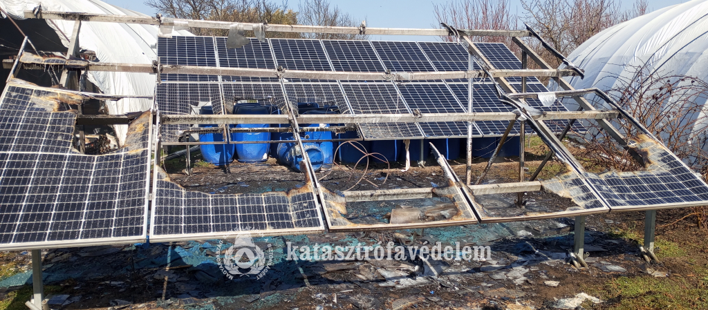 Egy lakossági felhasználású, földre telepített 12,5 kilowattos napelemes rendszer tizenöt panele, illetve a hozzá tartózó inverter égett március 16-án délután Gyulán – közölte a Békés Vármegyei Katasztrófavédelmi Igazgatóság.