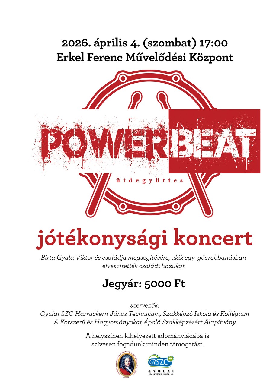 Jótékonysági koncertet tart április 4-én a GYSZC Harruckern János Technikum, Szakképző Iskola és Kollégiuma egyik tanulója, Birta Gyula Viktor és családja megsegítésére, az iskola alapítványának támogatásával.