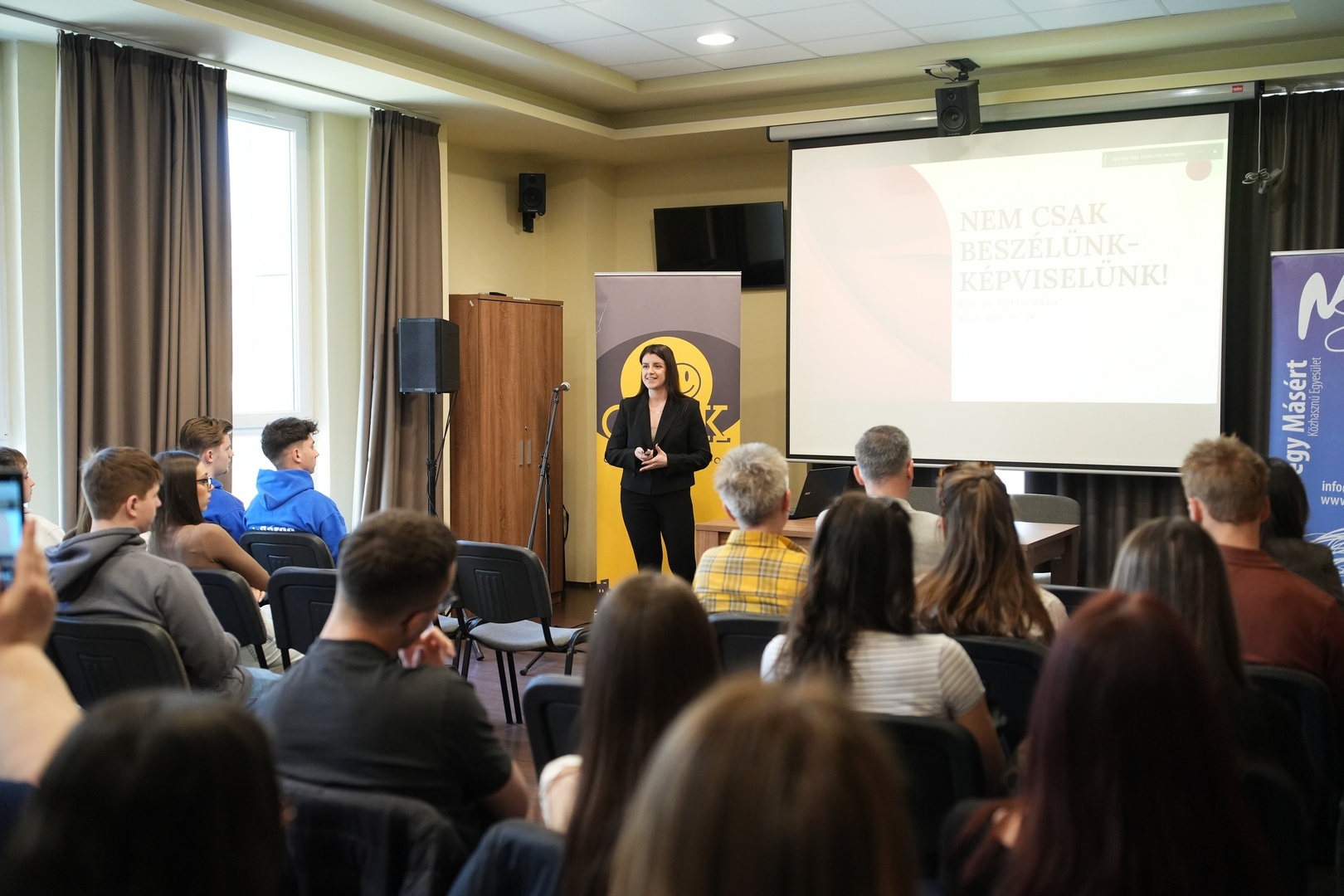 A konferencián mások mellet előadást tartott Kocsis Petronella, a Nemzeti Ifjúsági Tanács elnökségi tagja.