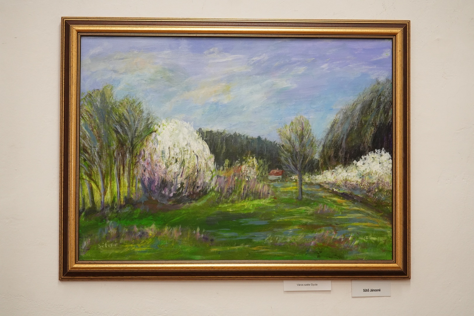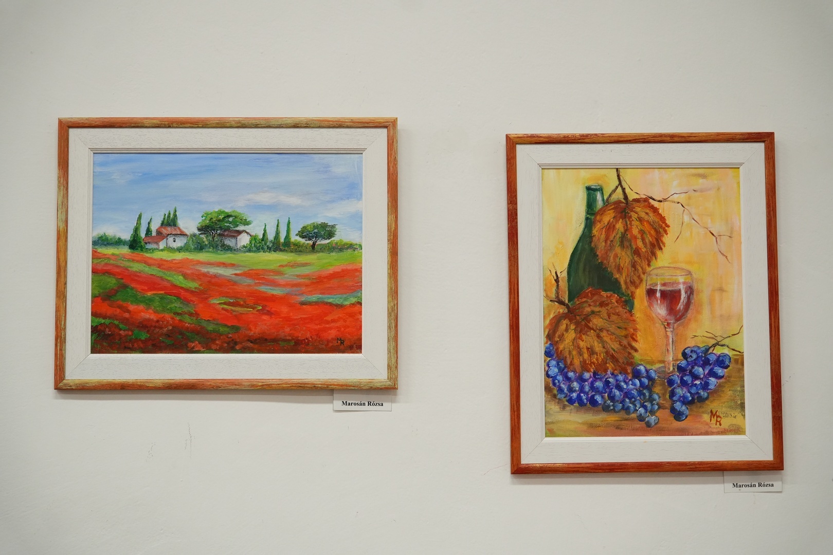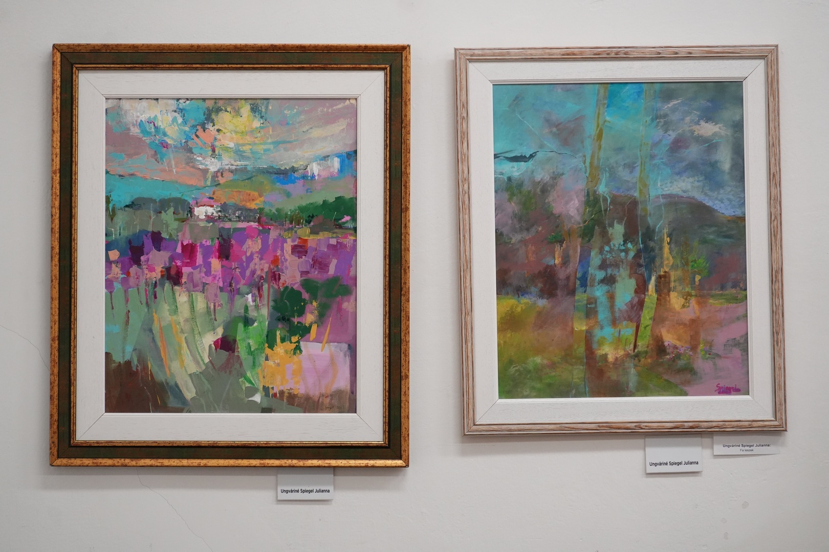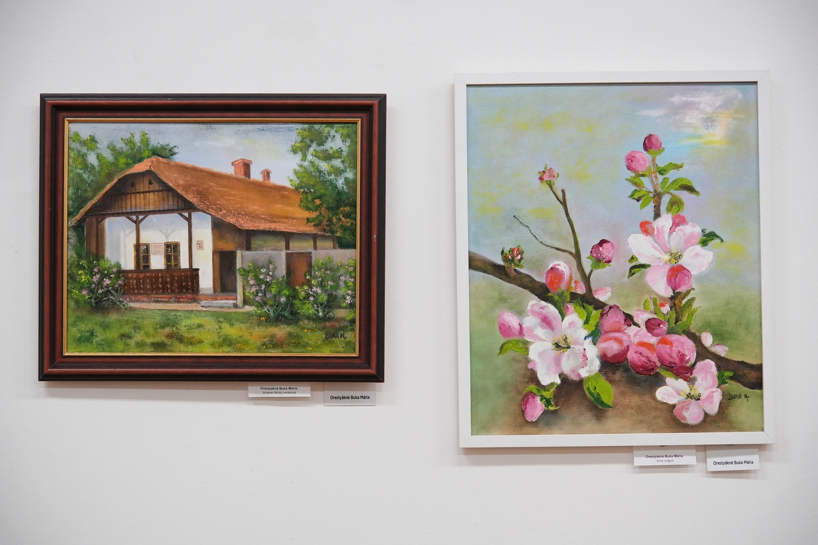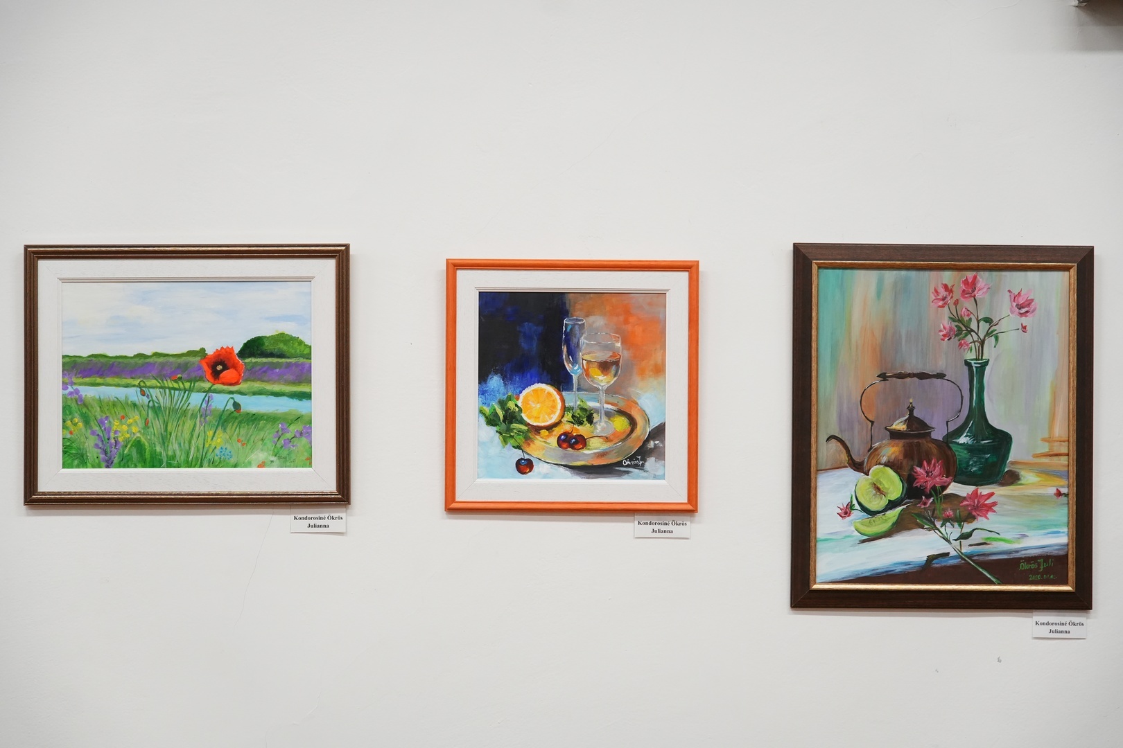 Arról is szólt, hogy az évforduló alkalmából nyílt tárlaton kedvenc képeiket mutatják be az egyesület alkotói: Fábián IrénOrestyák Jánosné Buka MáriaKondorosiné Ökrös JuliannaMarosán RózsaSütő Jánosné és Ungváriné Spiegel Julianna. Színes és témában gazdag tárlatot állítottak össze – húzta alá.