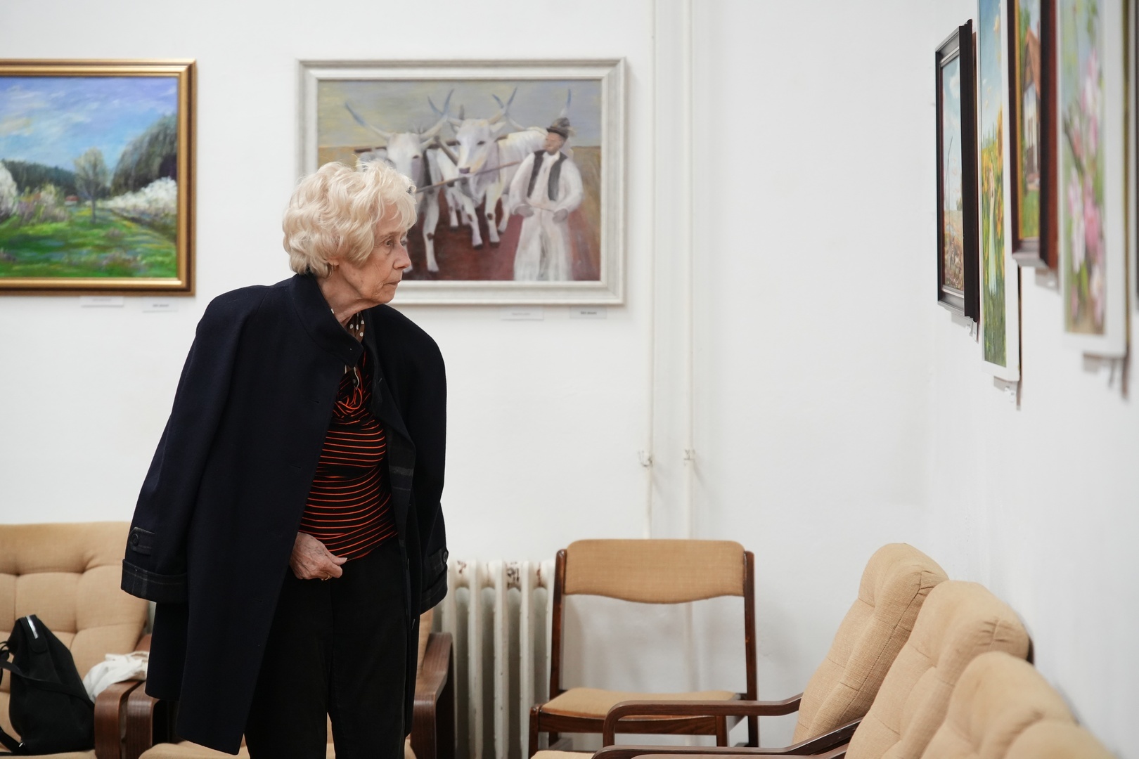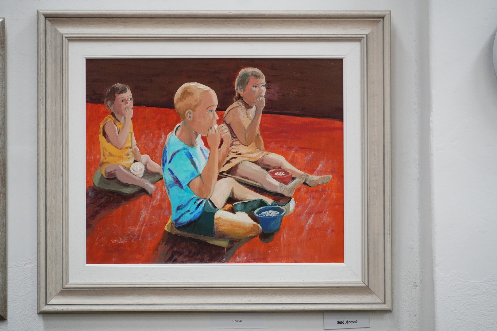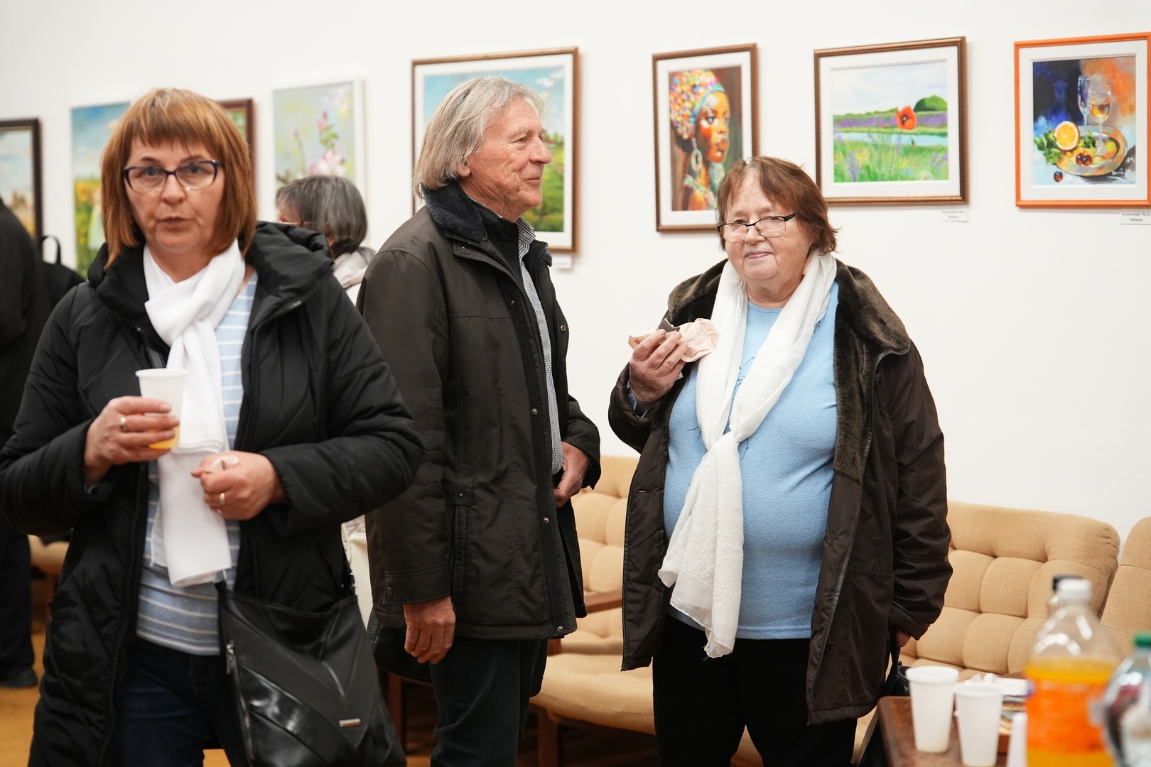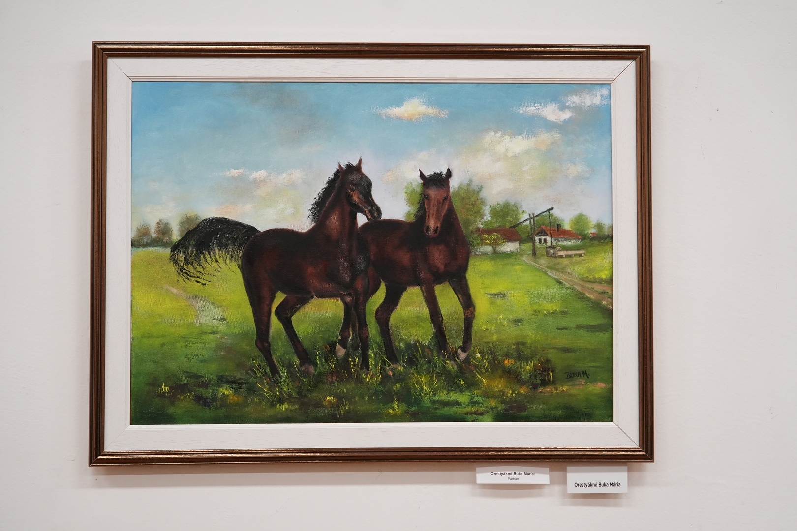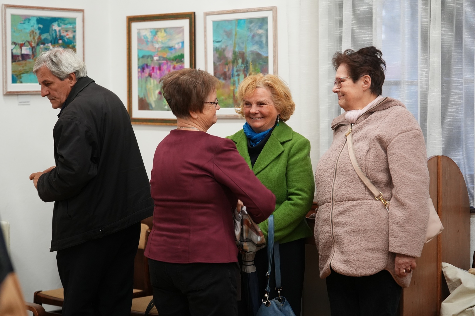 Arról is szólt, hogy az évforduló alkalmából nyílt tárlaton kedvenc képeiket mutatják be az egyesület alkotói: Fábián IrénOrestyák Jánosné Buka MáriaKondorosiné Ökrös JuliannaMarosán RózsaSütő Jánosné és Ungváriné Spiegel Julianna. Színes és témában gazdag tárlatot állítottak össze – húzta alá.