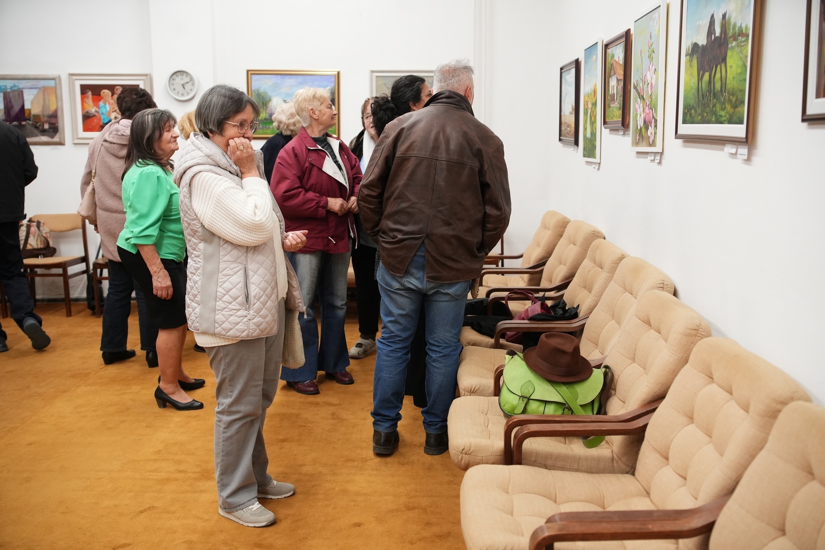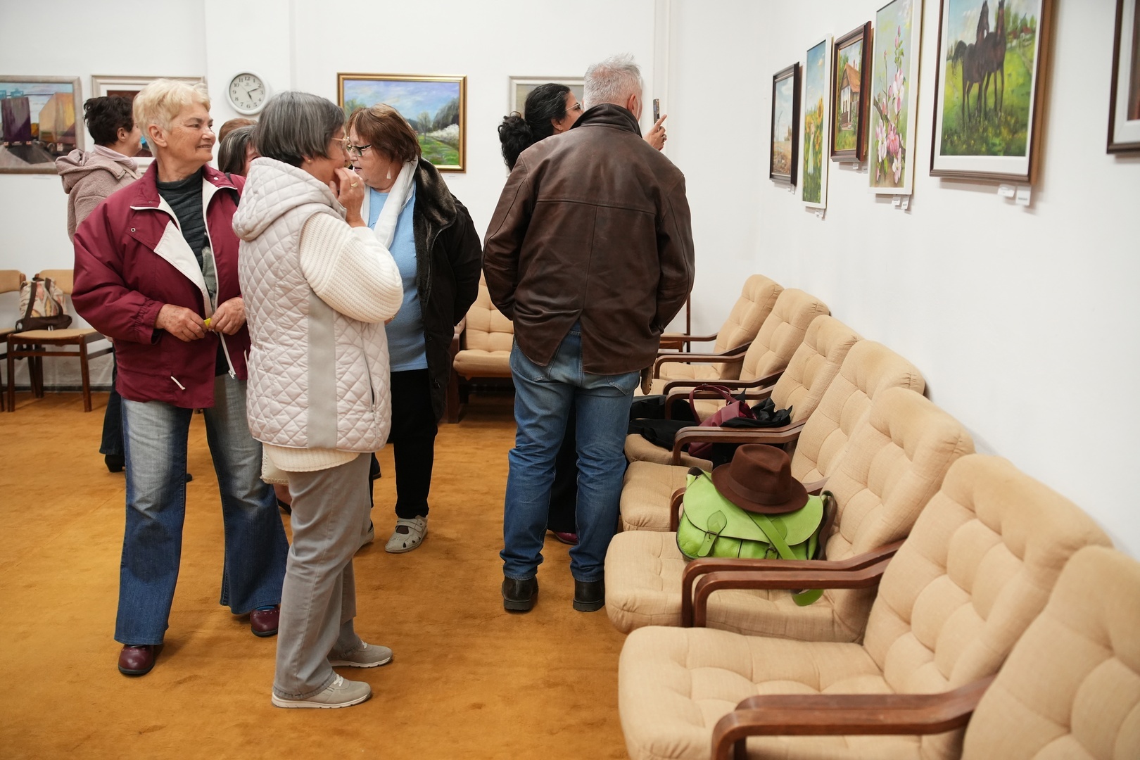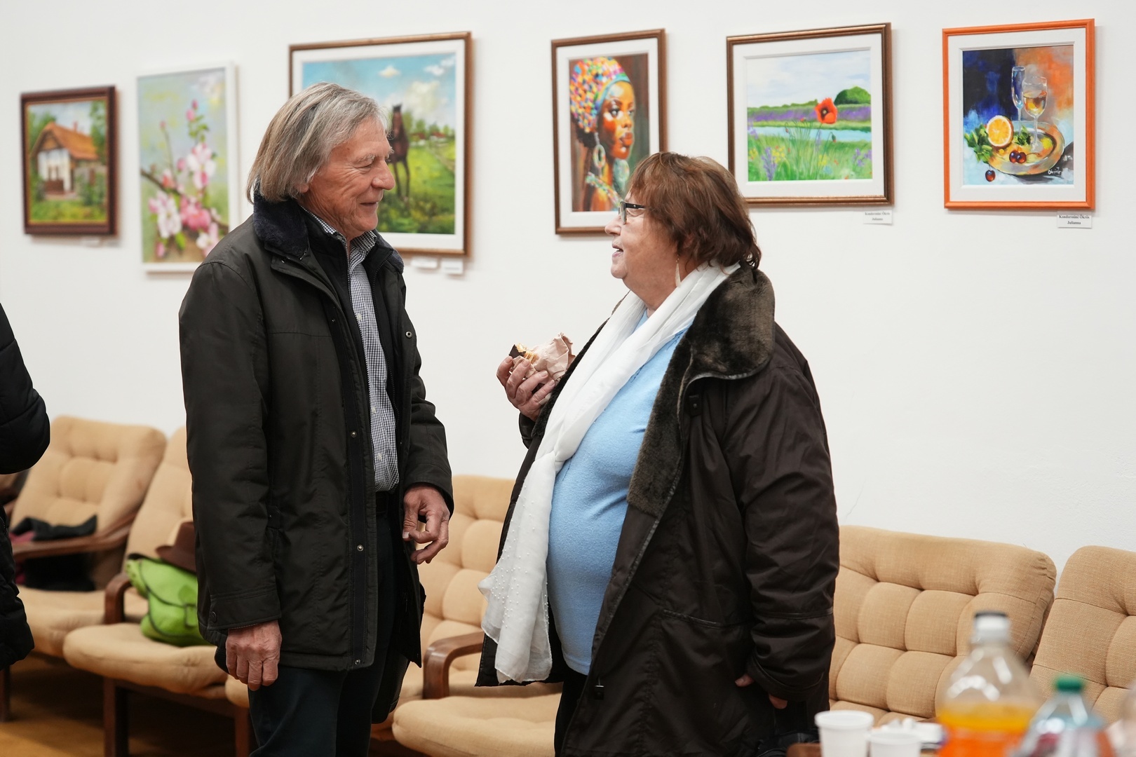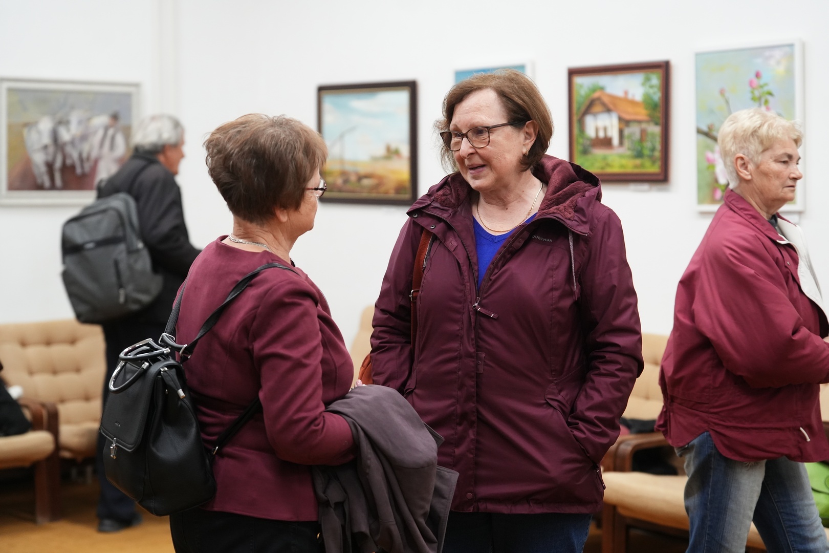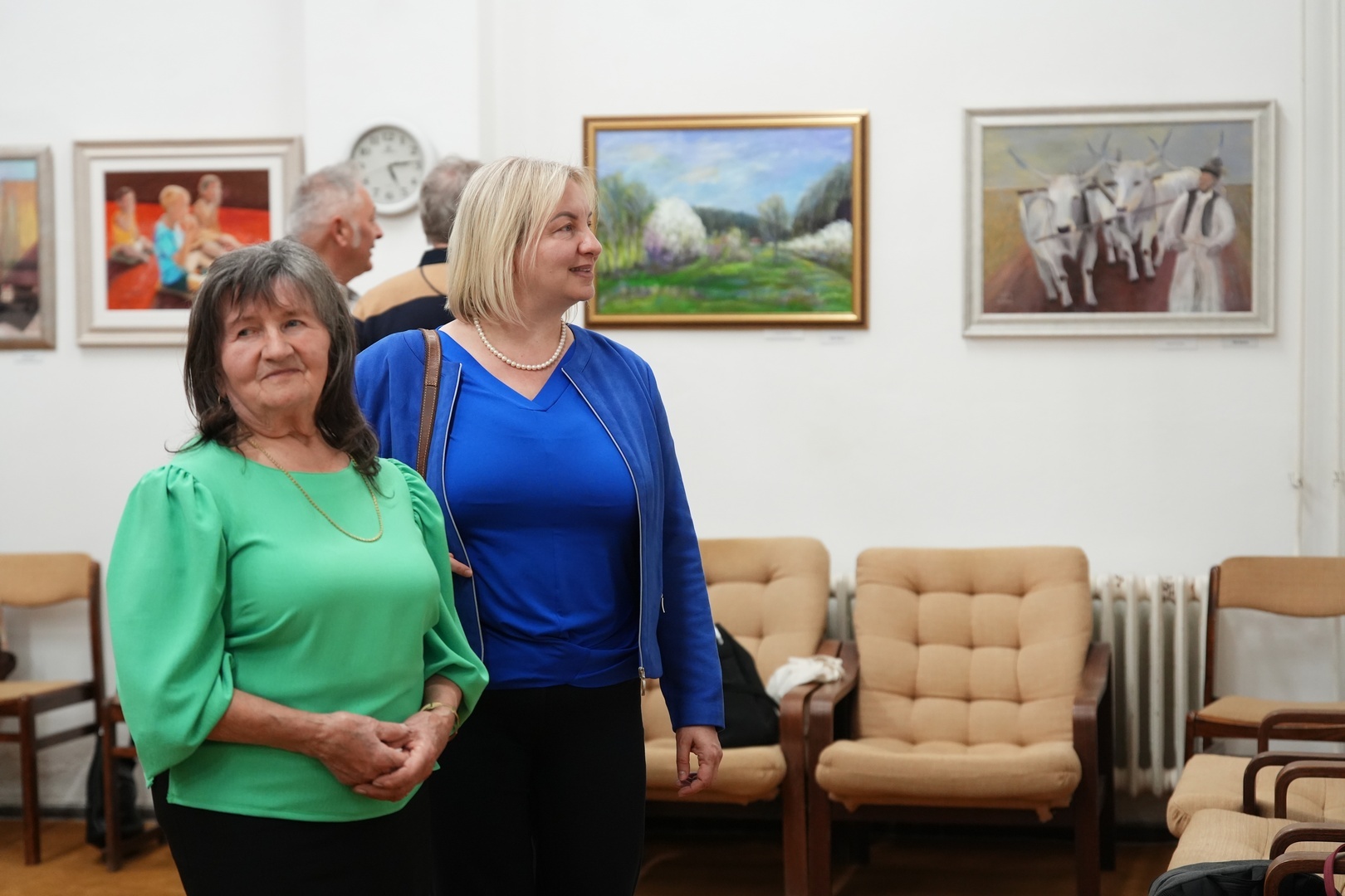 Arról is szólt, hogy az évforduló alkalmából nyílt tárlaton kedvenc képeiket mutatják be az egyesület alkotói: Fábián IrénOrestyák Jánosné Buka MáriaKondorosiné Ökrös JuliannaMarosán RózsaSütő Jánosné és Ungváriné Spiegel Julianna. Színes és témában gazdag tárlatot állítottak össze – húzta alá.