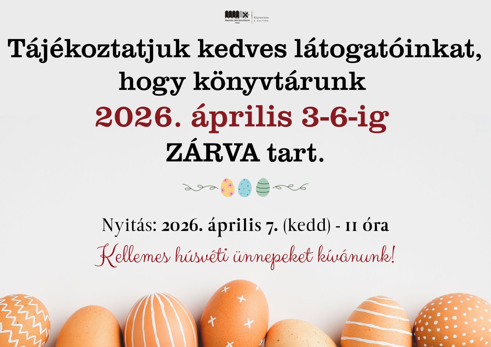 Zárva tart a Mogyoróssy János Városi Könyvtár húsvétkor, április 3. és 6. között – tájékoztatta lapunkat Dézsi János igazgató.