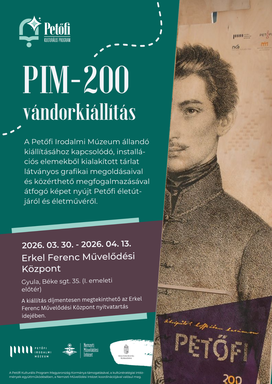 A PIM-200 Vándorkiállítás című tárlat a közgyűjtemény állandó kiállításához kapcsolódik. Az installációs elemekből kialakított kiállítás, amely nem a korábban már Gyulán járt mozgó múzeumbuszos, március 30-án nyílik az Erkel Ferenc Művelődési Központban – tájékoztatták lapunkat a szervezők.
