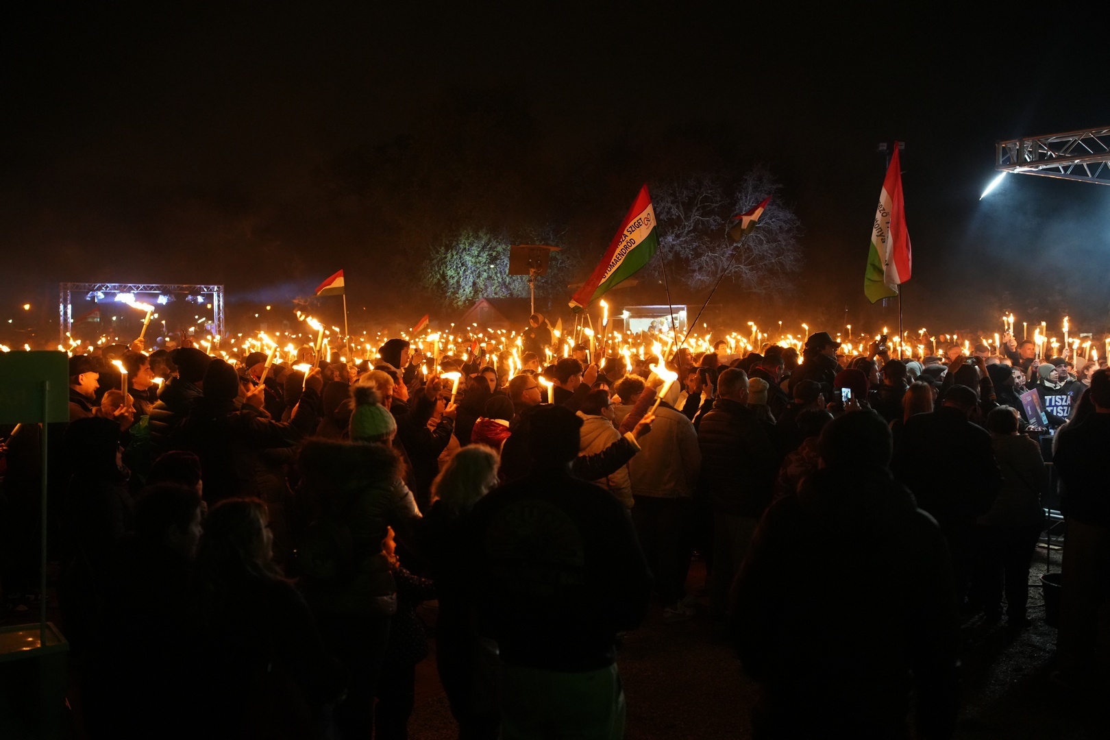 Magyar Péter aláhúzta: nem a magyar emberek állnak szemben a magyar emberekkel, nem a fideszesek a tiszásokkal – hiszen mindenki békés országban szeretne élni, mindenki szereti a hazáját –, hanem a „politikusbűnözők ejtették túszul a hazát”.