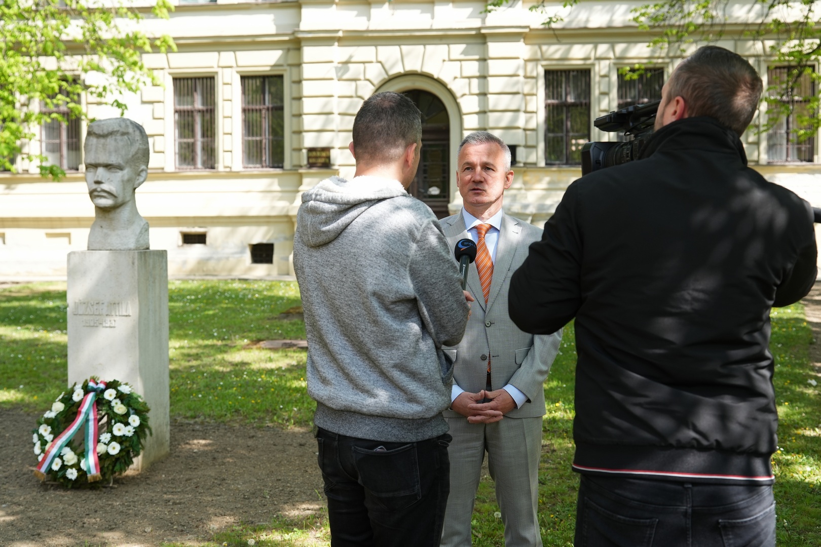 A József Attila-szobornál koszorúztak Gyulán a magyar költészet napján