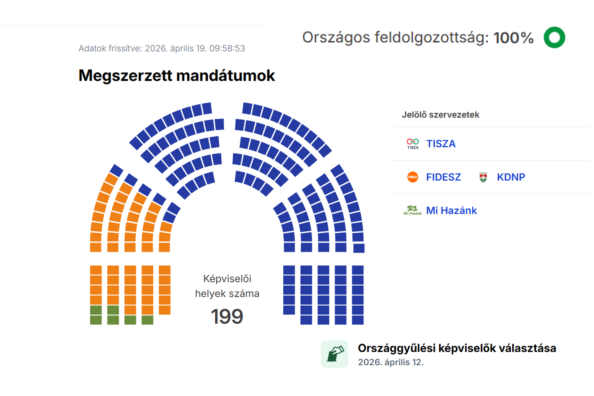 A Nemzeti Választási Iroda (NVI) adatai szerint a 106 egyéni választókerületből 96-ban a Tisza, tízben a Fidesz-KDNP pártszövetség jelöltje nyert. Országos listáról a Tisza Párt 45, a Fidesz-KDNP 42, a Mi Hazánk Mozgalom 6 képviselőt küldhet az Országgyűlésbe.